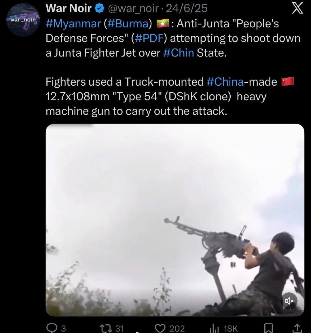 网上流传的一段声称柬埔寨士兵用防空机枪向泰国F-16战斗机开火的视频是假的。这段是来自缅甸的旧视频。海外新鲜事