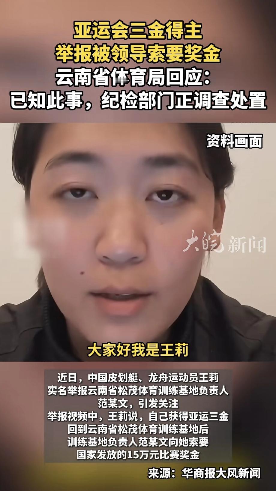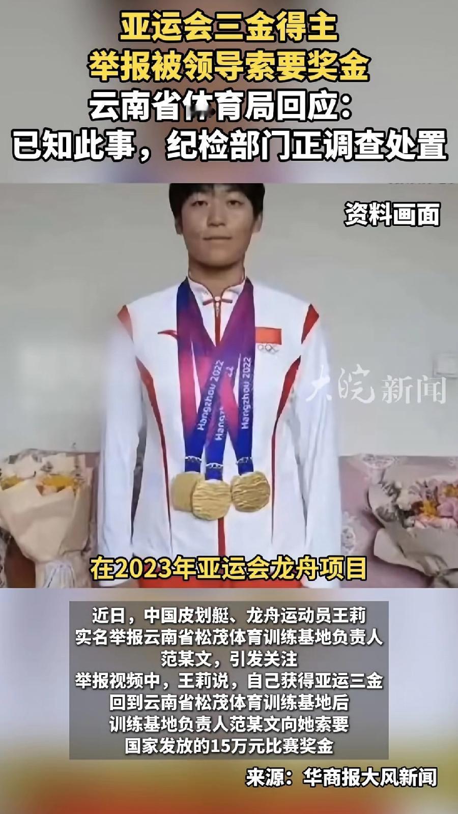 这是明目张胆地贪啊! 王莉,2023年划艇运动员三枚金牌得主,实名举报上级领导,原因是要抢走国家发放给她的奖金15万元,没给就被逼迫取消训练资格! 这都啥年代了,这领导是拿自己当土匪呢,连运动员拼下来的血汗钱都想占为己有,贪也不能这么明抢吧! 还好王莉敢硬刚,且不说奖金要被抢,对她还进行破坏名声,造谣瞒报,强硬取消训练资格! 她甚至还透露了队内被欺压的情况,看出有队员有被体罚,甚至还被迫跪下作为惩罚,这样的领导也是太大胆了,这下好了,坐在这个位置也是到头了。 运动员付出了多少血汗,那可是为国家争光的人才,作为领导,不仅没有给予鼓励和关怀,还想抢功欺压甚至是体罚,又强迫取消作为运动员该有的一切资格,碰到这样的领导,哪个运动员愿意付出血汗为国家争光呢,太让人心寒了! 体育 龙舟