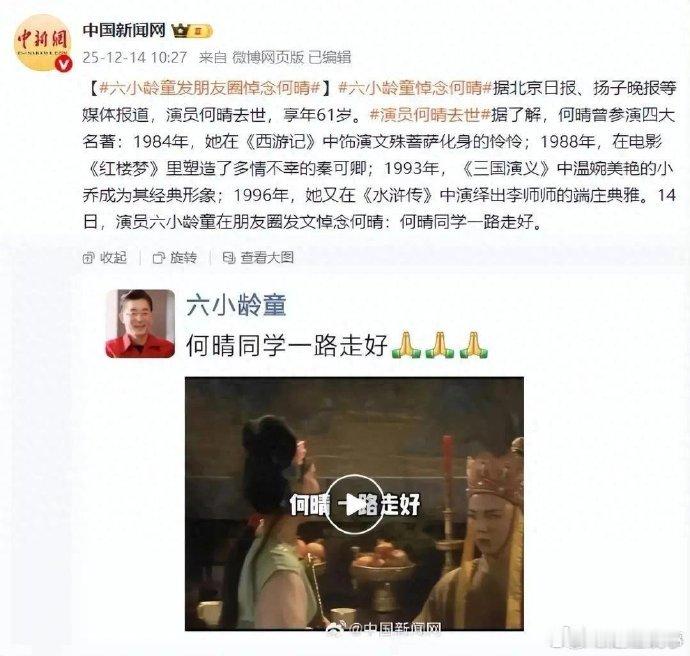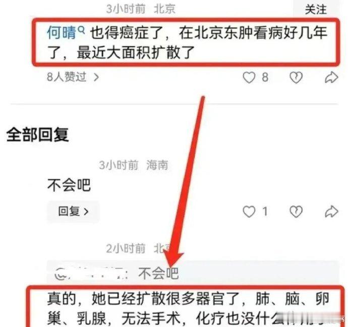 何晴离世前用尽全身力气拉紧儿子的手在娱乐圈的璀璨星河中,何晴宛如一颗优雅而迷人的星辰,以她的演技和独特魅力留下了不可磨灭的印记。然而,命运无情,在她生命的最后时刻,那用尽全身力气拉紧儿子的手的一幕,触动了无数人的心弦。何晴,她曾是荧幕上的古典美人,塑造了众多令人难忘的角色。无论是《西游记》中灵秀的怜怜,还是《三国演义》里温婉的小乔,她的一颦一笑都仿佛带着岁月的诗意。但在病魔面前,这位曾经光彩照人的女演员也变得如此脆弱。当生命即将走到尽头,身体的每一分力气都在消逝,可何晴却拼尽全力拉紧儿子的手。这一握,包含了太多太多的情感。它是母亲对孩子无尽的爱与不舍,是害怕松开手后就再也无法守护在孩子身旁的担忧。就像专家所说,在生命的弥留之际,人们往往会以最本能的方式表达内心最深处的情感,而何晴这一拉,就是她对儿子深沉的眷恋的最直接体现。回顾那些明星们面对生死的时刻,有很多相似的感人瞬间。梅艳芳在离世前,对自己的家人也是牵肠挂肚,那种眷恋与不舍让人为之动容。而何晴这一次,同样让我们看到了一个母亲在生命尽头的软弱与坚强。软弱的是她无法抵抗病魔,无法再长久陪伴儿子;坚强的是,即便身体已经虚弱不堪,她依然用尽全身力气,紧紧抓住儿子的手,仿佛在传递着 “妈妈永远爱你” 的信号。这一幕也让我们不禁思考生命的意义和亲情的重量。在人生的长河中,我们会遇到各种各样的挑战和困难,但家人始终是我们最温暖的港湾。就如同何晴在生命的最后时刻,儿子就是她心中最放不下的牵挂。我们在日常生活中,是否也应该更加珍惜与家人相处的时光,不要等到失去才懂得亲情的珍贵呢?何晴用尽全身力气拉紧儿子的手,这一画面将永远定格在我们的记忆中。它是母爱的见证,是生命尽头最深情的告白。让我们记住这一感人的瞬间,也让我们更加懂得珍惜身边的亲人,用爱去温暖彼此的生命。愿何晴在天堂安息,也希望她的儿子能够带着这份母爱勇敢前行。不知道大家看完何晴这一感人的举动,心中有怎样的感触呢?欢迎在评论区留言分享你的想法。