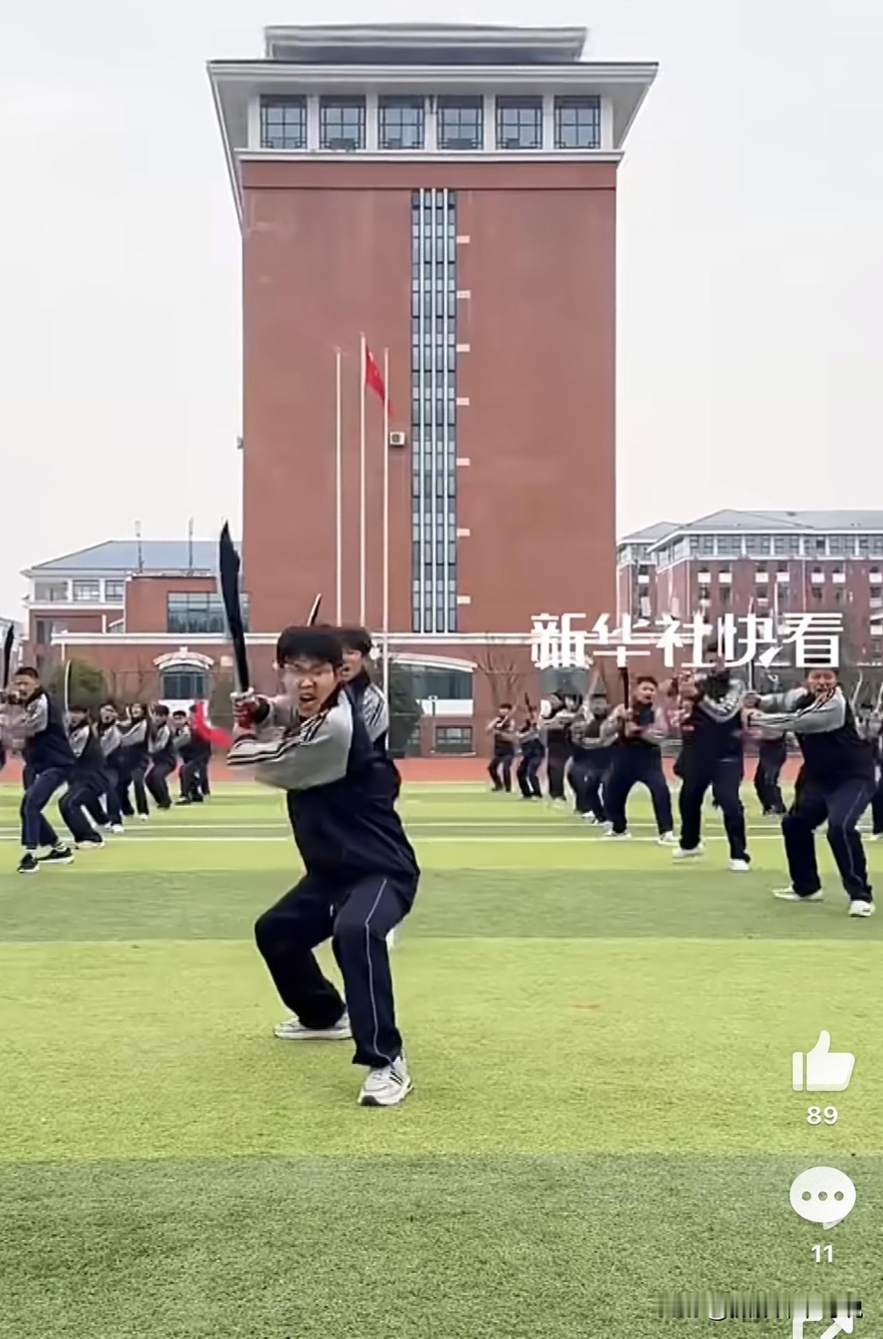 上千少年共斩破风八刀的场面太震撼了,那段誓词听得人热血沸腾!近日,贵州遵义某校课间千人齐练“破锋八刀”,声音嘹亮,动作整齐,气势震天。然而最打动我的是学生们的誓言:有一段历史,要永远铭记;有一种精神,要永远传承。手中大刀承先辈真钢之志,胸中热血沸当年杀敌之魂。今以我少年之躯,重练破风八刀,不为演武,只为明志。若外敌再临,此身即为长城,此刀即为回答!”就问,这样的誓词燃不燃?念起来血液沸腾不沸腾?冬日生活打卡季