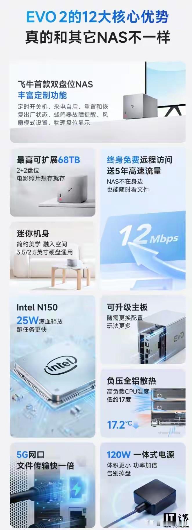 飞牛首款自有NAS EVO 2开启预售:双盘位设计,售价仅1999元起,家庭存储新时代到来! 在家庭存储领域,随着数据量的不断增长,用户对高性能、易用性强的网络存储设备需求也在不断提升。今天,飞牛科技正式宣布推出其首款自有品牌的NAS产品——EVO 2,并开启预售。这款产品以双盘位设计、价格亲民的策略,意在为普通家庭带来更智能、更安全的存储体验。 为什么飞牛EVO 2值得期待? 作为飞牛的首款自有品牌NAS,EVO 2融合了飞牛多年的技术积累与用户需求的洞察。它不仅在硬件配置上做足功夫,更在使用体验上进行了优化,力求让每个家庭都能轻松享受到专业级的数据管理。 双盘位设计,容量灵活扩展 很多家庭用户都面临存储空间不足的问题,特别是照片、视频、文档等数据逐年递增。飞牛EVO 2采用双盘位设计,支持RAID 0/1等多种模式,既能提升存储速度,也能保障数据安全。即使没有复杂的技术背景,也能轻松进行硬盘配置和管理,满足不同家庭的多样需求。 价格亲民,性价比高 预售价格仅1999元起,飞牛EVO 2为家庭用户提供了极具吸引力的选择。相比市场上其他品牌的同类产品,它在价格上更具竞争力,同时硬件配置和功能也毫不逊色。这意味着,普通家庭也能轻松拥有一台专业级的NAS,保障家庭数据的安全与便捷访问。 易用性强,操作简便 飞牛一直强调“用户体验”,EVO 2在界面设计和操作流程上进行了优化。无论是首次使用NAS的用户,还是技术宅,都能快速上手。通过手机APP或网页端,轻松实现远程访问、数据备份、共享等功能,让存储变得简单而高效。 安全保障,数据无忧 在数据安全方面,EVO 2支持多种备份方案,并配备了多层安全机制,保障家庭数据的隐私和完整性。无论是意外删除、硬盘故障,还是网络攻击,都能得到有效保护。 未来发展,更多可能性 飞牛表示,EVO 2只是品牌布局的开始。未来将持续推出更多丰富的存储和智能家居产品,打造一站式家庭数字生态系统,让用户享受更智能、更便捷的生活。 总结: 飞牛首款自有NAS EVO 2的推出,无疑为家庭存储市场带来了一股新风。以双盘位设计、亲民价格和简便操作为核心亮点,它不仅满足了普通家庭的基本存储需求,更开启了家庭智能存储的新篇章。现在预售仅需1999元起,赶快行动,拥抱家庭存储的新时代吧!