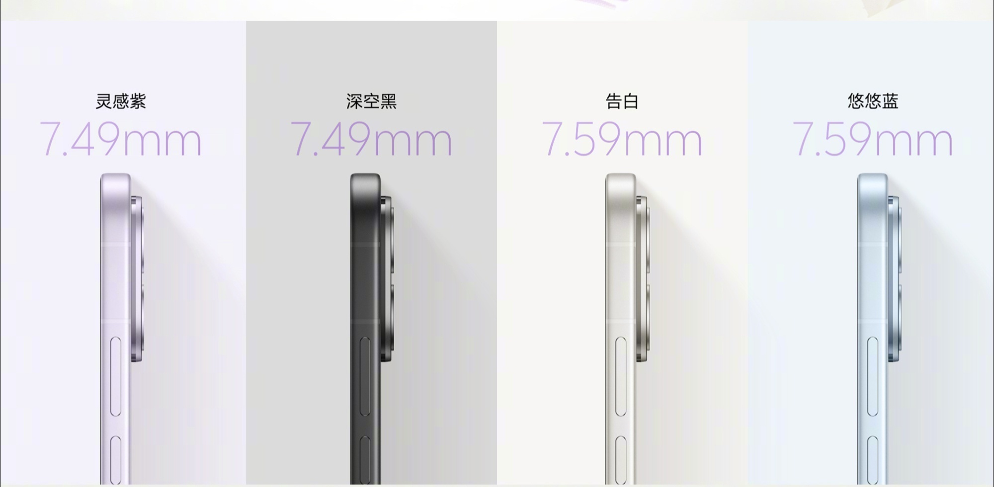 vivo S50系列配色和设计:S50有告白、悠悠蓝、灵感紫、深空黑四款配色,6.59英寸直屏,7.49mm机身;S50 Pro mini有告白、灵感紫、深空黑三款配色,6.31英寸直屏。全系金属中框。你最喜欢哪个颜色?