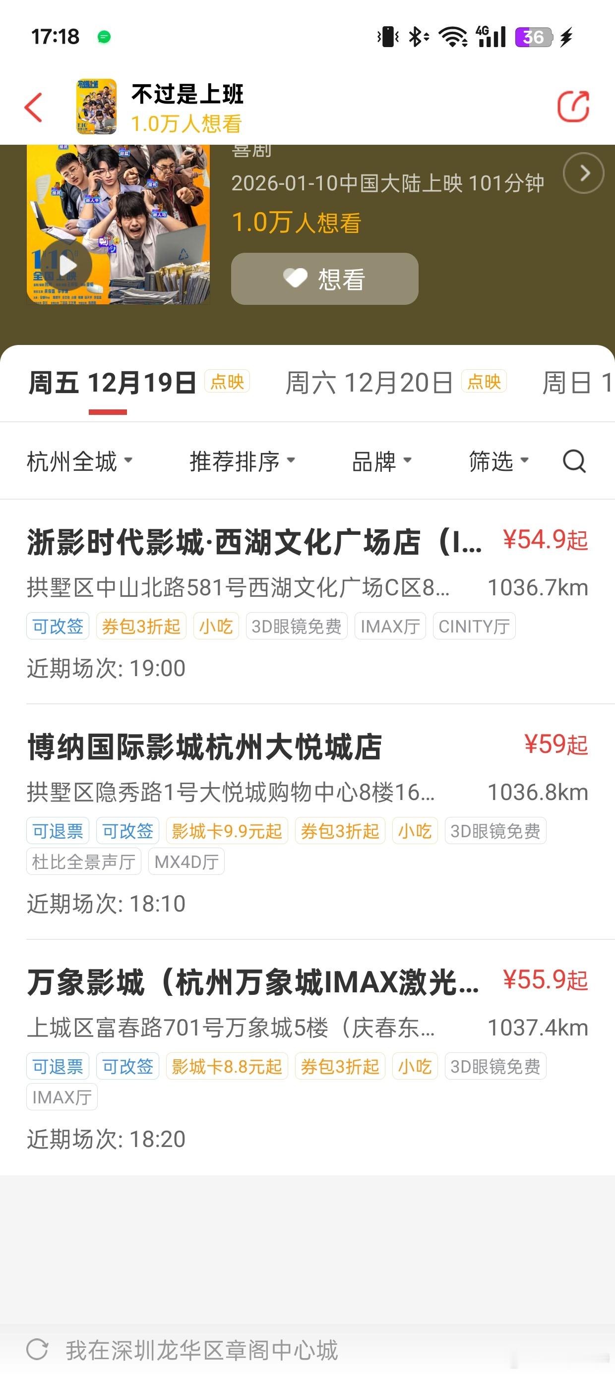 听听温特怎么说1月10日上映的《我不想上班》周五六日目前已经有不少影城开出点映场次了,估计点映规模不会太大几百场的样子。看看这周《用武之地》点不点了目前还没发拷贝,不过要点估计也是限定城市和影城几百场的样子吧。