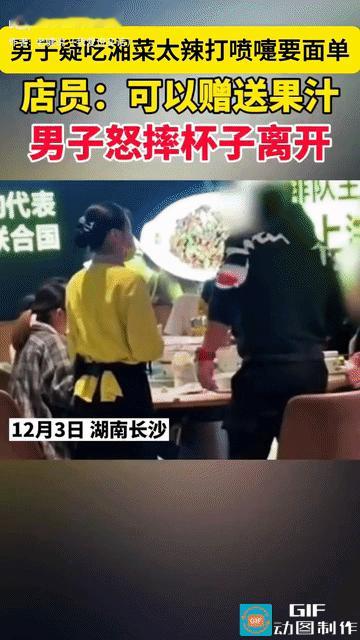 网友无语了:湖南长沙,男子跟朋友一起去一家湘菜馆吃饭,因为菜太辣,一行人边吃边打喷嚏。他们觉得菜太辣了根本吃不了,菜还剩了很多。男子就叫来了服务员询问服务员该怎么处理,那意思就是想让服务员给免单。 服务员赶紧说可以赠送一些果汁解解辣,男子一听特别生气,觉得服务员这是看不起他,于是拿起桌子上的杯子往地上一摔,说:“你是觉得我买不起一杯果汁吗?”然后直接就招呼朋友走了,一行人也就跟着男子走了!服务员站在那里吓得不敢动了。 而老板为了不影响其他顾客吃饭也就没有阻拦! 对此有网友说:正常情况下,每道菜,要标注菜,辣还是不辣,辣,分微辣 中辣 重辣。这样客人就可以根据自己的口味选菜了! 也有网友说:湘菜馆的菜基本上都是辣的,吃不了辣就别去湘菜馆吃饭,因为湘菜馆的辣,即便是微辣,吃不了辣的人都会说辣! 讲白了这就是没事找事,想吃免费餐找的借口,谁不知道湘菜的特点就是辣啊,去吃的时候就不能说清楚自己不能吃辣吗?再说了每个人对辣的接受程度不一样,可能店里的微辣对他来说都很辣,既然要去吃就应该可解清楚人家的口味再决定要不要去吃。 现在菜都吃了,吃饱了说菜太辣不能吃了,明眼人一看就知道你啥意思。人家服务员还好心送你饮料,你还觉得人家是看不起你,还生气,我觉得这就是被看穿了恼羞成怒了! 最可怕的是,一行6个人没有一个明事理的,果然是物以类聚啊,都不是好人! 真的吃不起就自己在家做一点,不要出门丢人了,那么大的人了对吧,多少给自己留点脸吧,传出去不好听的! 真是世界之大,无奇不有,为了吃一顿免费的,啥奇葩理由都有,我还是见识太少了啊! 店老板也太好说话了,不好好处理,有一就有二,下次还会有其他人效仿。而且也是对这群人坏行为的纵容,只会让他们变本加厉再去坑别的餐厅。 现在各行各业不好做,就是因为有一群这样的人,遇到了,老板到底该怎么维护自己的利益呢? (视频来源网络,侵删[祈祷])