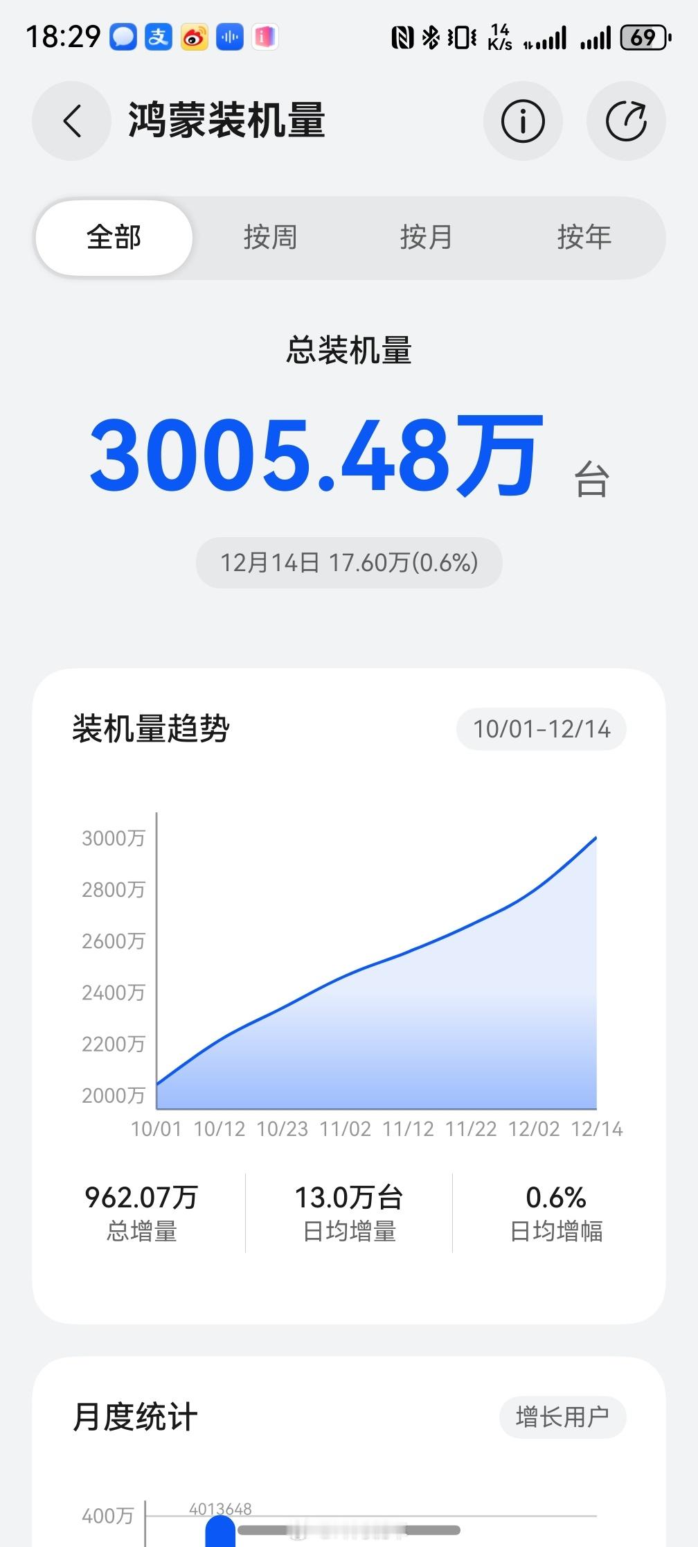 鸿蒙装机量,累计突破3000万台,本周新增124.6万!一起见证全球第三大操作系