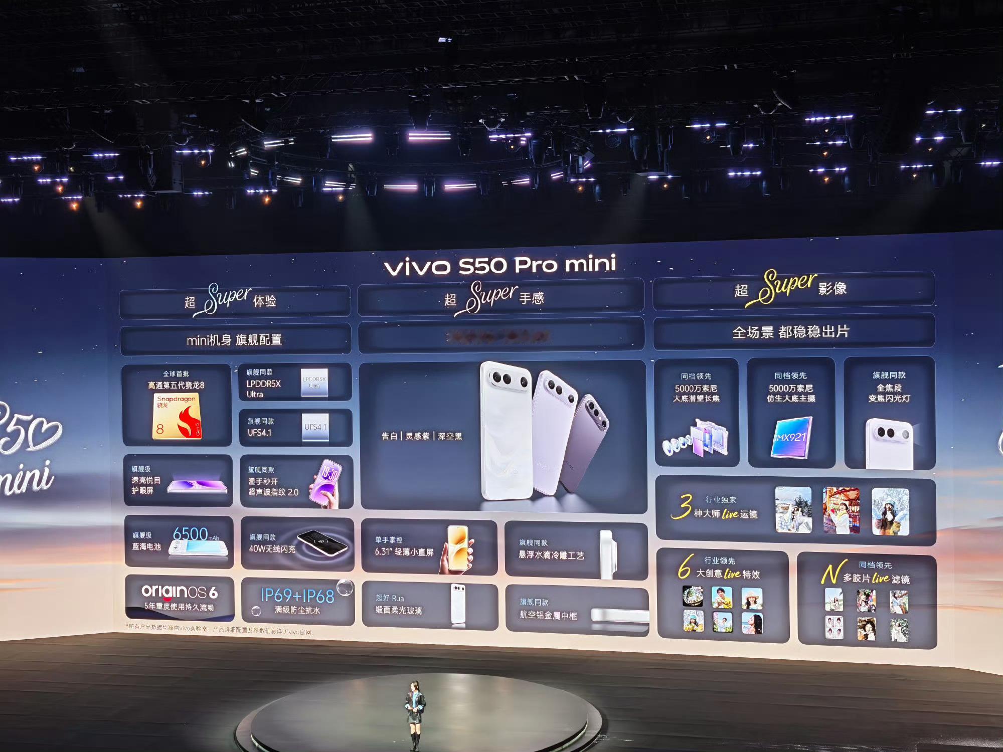 vivo发布会vivo S50 Pro mini!现在的大屏手机都沉得像板砖,揣兜费劲,那这台小屏旗舰直接戳中痛点~ 6.31英寸小直屏+「灵感紫」渐变机身,冷雕边缘细腻如霜,192g单手握持像握热奶茶,冬日揣兜无压力,颜值治愈感拉满!别被软萌骗了,骁龙8 Gen5+LPDDR5X Ultra+UFS4.1性能铁三角超能打,跑分300W+,《原神》满帧、多任务丝滑。6500mAh电池+90W闪充,喝咖啡功夫充满,追剧到凌晨不慌。索尼IMX882潜望长焦拍啥都像电影海报,大师运镜+宝丽来声效,社交出片绝了。IP69+防水+湿手解锁超贴心。3699元起拿下小屏旗舰,性价比拉满,小屏党闭眼冲,单手掌控全场的快乐谁懂