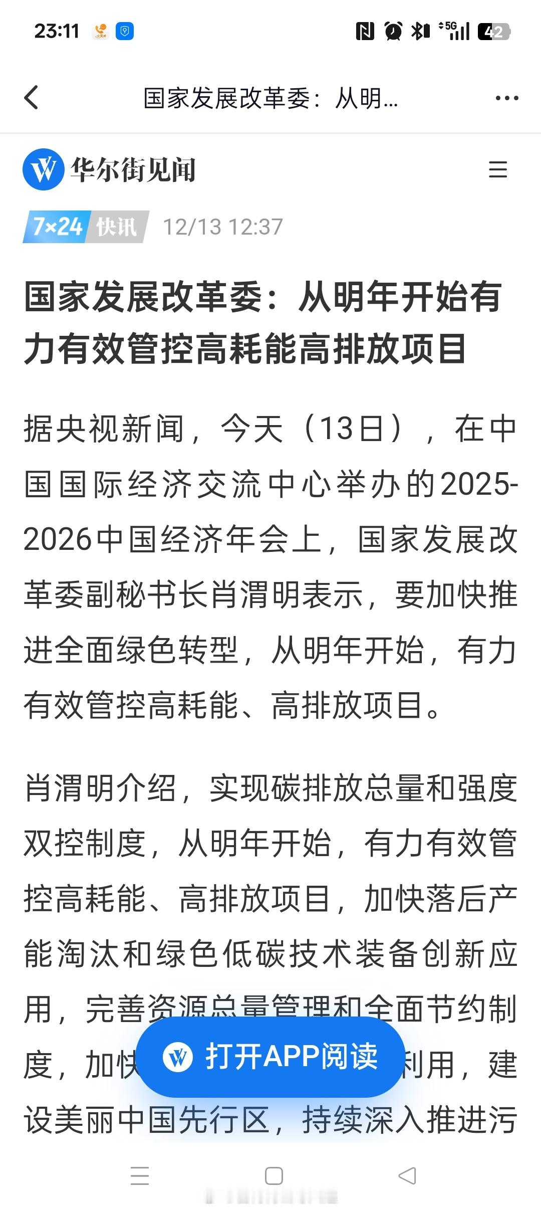 【国家发展改革委:从明年开始有力有效管控高耗能高排放项目】据央视新闻,今天(13