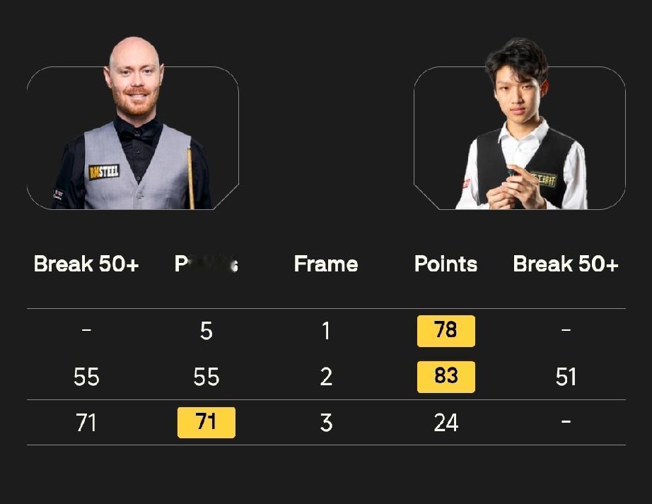 袁思俊 1-0 本·沃拉斯顿 吴宜泽 3-0 伊安·伯恩斯 加里·威尔逊 1-3 蓝裕豪 12月15日21点,斯诺克苏格兰公开赛首轮比赛,7局4胜赛制,胜者晋级32强。 揭幕战,雷佩凡4-3险胜阿米尔·萨克霍什、张安达4-1轻取范争一,雷佩凡、张安达率先晋级32强。