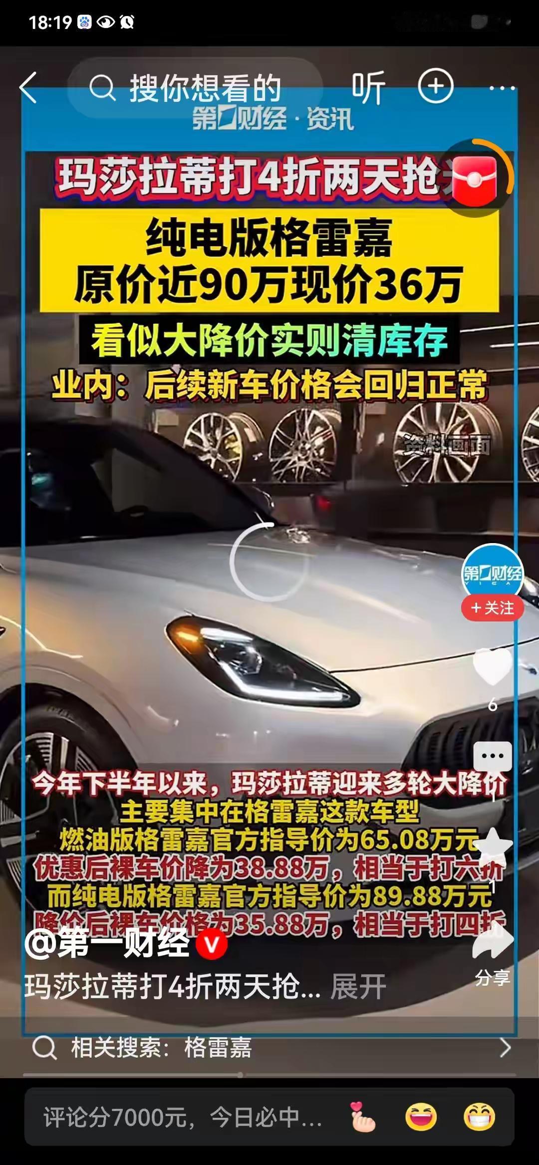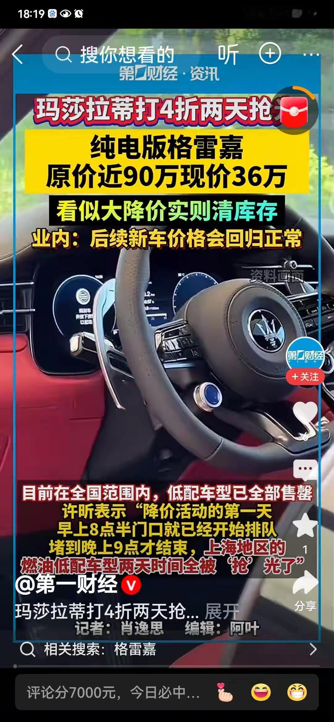 上海浦东玛莎拉蒂门店挤爆!30万开走“三叉戟”豪车,两天抢空100辆,有人犹豫一晚痛失爱车 谁能想到,曾经高不可攀的玛莎拉蒂,如今竟成了“价格屠夫”。近日,上海一家玛莎拉蒂4S店上演了堪比菜市场抢购的疯狂一幕。原价65万起的格雷嘉SUV,直接降价至38.88万起,更有纯电版狂降54万,裸车价低至35.88万。消息一出,全国车市瞬间沸腾。 清晨八点半,门店还未营业,门口已排起长龙。有人揣着银行卡,有人带着现金,目标明确——抢一辆“打骨折”的玛莎拉蒂。店内销售顾问忙得脚不沾地,连喝口水的工夫都没有。原本下午六点下班,却被热情的客户硬生生堵到晚上九点。 这不是个别现象。从北京到广州,多家经销商传来库存告急的消息。全国限量100余辆的低价低配车型,短短一个周末被横扫一空。有消费者头天看车时犹豫了一下,第二天兴冲冲赶来,却被告知心仪的配置和颜色早已售罄,徒留懊悔。 这场抢购风暴的背后,是一个豪华品牌迫不得已的“断腕求生”。玛莎拉蒂曾是中国微商和网红们最爱的“财富象征”,2017年在华销量高达1.44万辆。然而时过境迁,到2024年,其销量已暴跌至1228辆,光环迅速褪色。 此次大幅降价,实则是清理一批因疫情延迟入华、已与新款“撞期”的库存车。知情人士透露,这批车“卖一辆亏一辆”,但为了快速回笼资金、为新车让路,品牌方不得不祭出如此罕见的促销力度。这无异于一场豪赌,赌的是品牌残余的号召力。 对于消费者而言,这无疑是一次“薅羊毛”的绝佳机会。三十多万的价格,过去可能只够买一辆宝马3系或奔驰C级的入门款,如今却能开上自带超跑基因、拥有迷人声浪的玛莎拉蒂。那种“曾经梦寐以求,如今触手可及”的心理满足感,驱动着人们争先恐后。 社交平台上,“30万买玛莎拉蒂”的话题迅速引爆。有人晒出订单,庆祝“圆梦”;有人调侃“以后出门‘撞衫’率恐飙升”;也有看热闹的网友犀利点评:“这买的不是车,是那个三叉戟车标带来的社交货币。”情绪复杂,却真实反映了大众心态。 然而,狂欢之下也需冷静。业内专家提醒,豪车之所以是豪车,不仅在于购买门槛,更在于高昂的后期养护成本。玛莎拉蒂的保养、维修费用远超普通品牌,一个零部件的价格可能就令人咋舌。纯电版车型在智能化和续航方面,与同价位的国产新能源车相比也并无优势。 这波降价清仓,像一面镜子,照出了汽车市场的深刻变局。新能源浪潮的冲击下,传统豪华品牌的光环正在被稀释。当国产电车在性能、智能、服务上全面赶超,仅靠一个车标还能让消费者心甘情愿付出溢价吗?玛莎拉蒂的“以价换量”,或许正是这种焦虑的体现。 对于成功“捡漏”的车主来说,这是一次性价比超高的消费。但对于品牌自身而言,这种伤筋动骨式的降价,是否会进一步损害其豪华定位和品牌价值,仍需时间观察。当“三叉戟”变得唾手可得,它曾经代表的那种距离感和尊贵感,又该何处安放? 这场持续仅两天的抢购盛宴已经落幕,但它留下的讨论远未结束。它不仅仅关乎一辆车、一个价格,更关乎人们对品牌价值的重新审视,以及在消费升级与理性务实之间的微妙平衡。下一个放下身段的豪华品牌会是谁?消费者又将在何时迎来新的“惊喜”?市场永远充满变数。 上海身边事