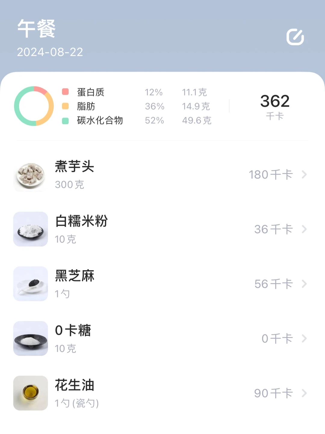 🥗食材:芋头、黑芝麻、糯米粉、白砂糖(0卡糖)