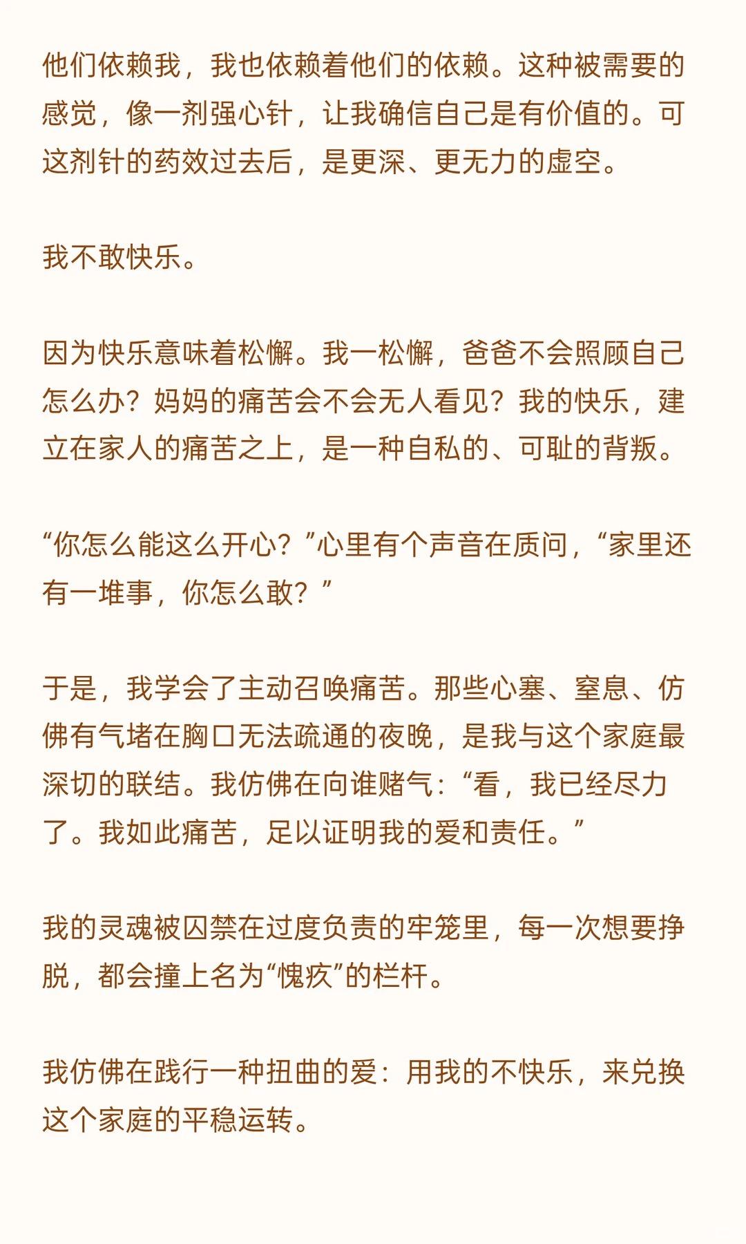 他们说,快乐是一种选择。可对我而言,快乐更像是一个禁区——风景优美,我却只能在门口徘徊,然后转身回到我那间名为“责任”的房间里。
