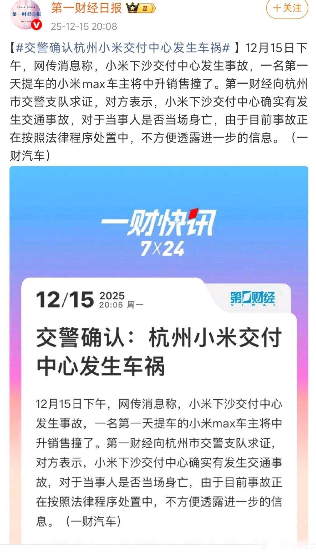 这几天我看到了一些辅助驾驶的事故,但第一财经在发小米事故的时候总能如此迅速。