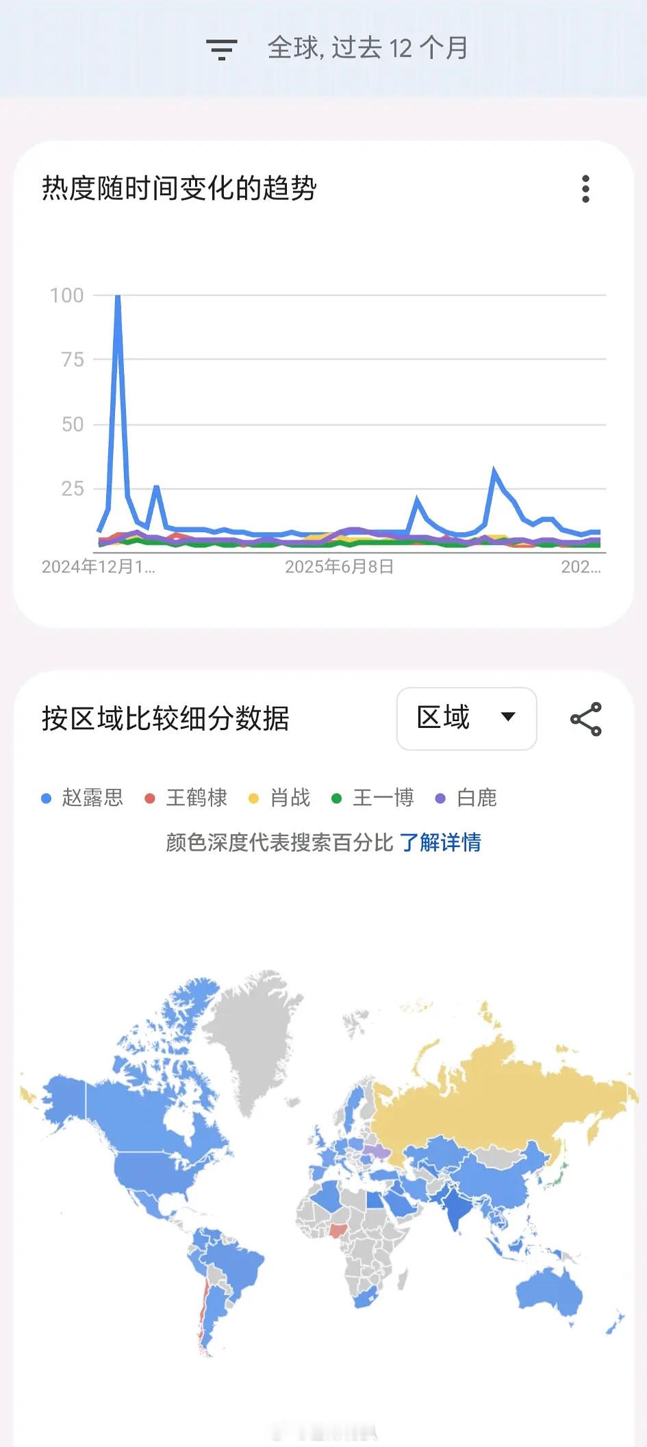 【海外人气】内娱五顶的谷歌趋势……赵露思 白鹿 肖战 王一博 王鹤棣