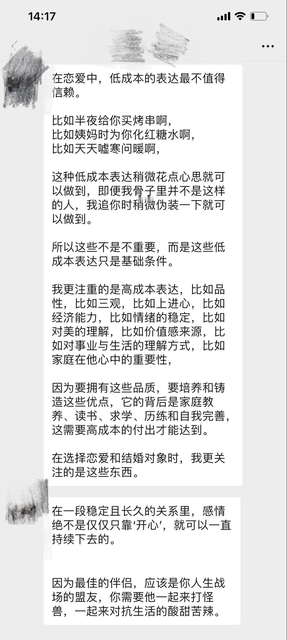 这几年遇到绝世好男人童年的心理阴影和原生家庭带来的伤害被双双治愈后,被完整的爱紧紧包裹包围住之后,重新绽放黑色生命力,是会对一些曾经热衷的字母游戏开始生理性厌恶排斥的。 前几年我经常发“戒掉了情绪还是会泪奔” 经常有人好奇线下见我的时候蛐蛐我以为我生活的很惨为何每天哭, 其实那两年更多的泪水都是被感动哭的。 我记得我爱过。 我遇到那么好的人之后就很挑剔了。 有一种《蓝色茉莉》嫌弃金洁的感觉。 他说我对人对任何事都太苛刻了,不,我是太爱自己了。 我太懂自己任何细微的感受,我觉得任何事情都是要看缘分的。 没缘分的人和事都不能执念强求。 前两天打车去一个地方,一直打车车辆一直不动,我试了三次我就取消了。 我觉得上天在告诉我不想让你去。我就调整方向。面对一个天菜一样的190无毛肌肉白男。他家里的枕头我枕着不舒服,不是我喜欢的亚朵我都立刻穿衣服走人。 我永远保持清醒。 就像现在追我的一个小孩子。 刚认识几天, 他约我去《阿凡达3 》 我说“好啊”,我本来也觉得他不合适,枯燥乏味的灵魂, 我轻易不会主动约这个行业之外的任何人看电影。我觉得这是很私密很高级的事情。一般全年跟我看电影的人除了电影行业之外的人,其他的都把我得罪光了。我的毛病就是这样多。我觉得他提出 “好啊” 就加速了我们分开的步伐。 因为俩人一起看电影太考验彼此的耐心和情商生活方式以及默契了。 我太敏感了跟我呆一会我就能看出来一个大概。 我这两个字一定是有一种时尚圈的傲慢和虚伪以及虚假。 就像时尚活动上大家互相打招呼“宝贝,你好美啊!” 其实他的潜台词OS是“怎么你这个贱人也配出现在这里!” 这就是时尚圈。永远美丽虚伪利益至上。 我一般特别讨厌跟电影行业之外的人一起看电影。先不说全年101% 的电影我都是提前看的,有些没上映的我也能在导演或者制片以及布拉布拉环节看过。 电影肯定要第一时间看啊,而且要选择最好的厅最好的格式最好的位置。 但是绝大多数人就是觉得看电影找一个周末的时间,找一个离家里近的地方就行。 看了就行。 这一定是有很大的代沟的。 这些沟通起来都觉得三观不合分道扬镳。 他想的是跟你在一起看一个电影放松一下。 你想的是专注电影里面的恨不得一根头发丝都看出多少厘米。终于我觉得憋的也难受直接发给了他我选择的影院和时间。 我说: 你直接买一张你自己的,我不用买。 到时候一起去就行。 他说为什么。 我说我刷脸就行。 我不用买票。 他说为什么, 我说没有为什么,有机会再告诉你。 你可以理解为你去你自己家吃饺子不用付钱一样。 这个时候我已经没有耐心了。 他继续发给我场次他说没有好的位置了,中间的都选了。 他说要不我们换一家影院换一个别的厅吧,我立刻回复:不可能。那我自己看。 他: 不行 我就要跟你看。 他像巨婴一样在这里胡搅蛮缠分享情绪。 他会给你制造很多问题很多麻烦需要等着我来解决。 这就是我无法跟学生沟通,无法跟比我幼稚的人接触的原因。 我永远无法接受那种早安晚安,发两句乖听话。花钱的时候躲在别人后面。没事给你点个外卖下楼接送平时过连体婴生活的男人。我需要的是一起前进的盟友。 我跟他说。 如果是我前任我们在一块看电影有这种情况最好的座位抢不到了,又只能看这一场的话,他还是会随便买两张,然后提前十分钟检票进场,然后询问已经进来的,比较集中的位置,他会选择两个不会拒绝他的陌生朋友说。能不能画三倍四倍的价格买你们的位置跟我们的位置换一下。然后给出一种非常简单高效实用的成本解决问题。 小朋友惊呼, 卧槽, 还可以这样! 我说好了。 我们的关系已经结束了。 不用看了。