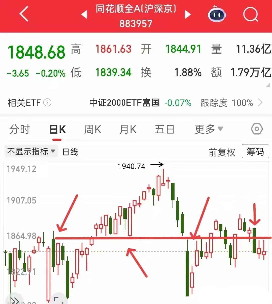 注意!明日A股或将迎来变盘窗口今日市场走势再度陷入极端割裂状态——同为市场人气标的,却呈现涨停与跌停两极分化的局面。即便是选择抱团核心标的,也难逃高赔率亏损的风险;而退守低位冷门股,更是因缺乏资金关注而难有表现,操作难度陡增。盘中全A指数一度冲高至1860点附近,带动上涨家数攀升至3400家,小普涨行情雏形初现。但就在这个关键点位,获利盘与套牢盘同步涌出,指数随即冲高回落。想必大家对1860点并不陌生,上周五正是我提示大家逢高离场的关键位置。这个点位究竟有何玄机?答案就在于1860-1866点区间堆积的大量套牢盘,正是这一重压区域,成为了指数上行的最大阻力。要想有效消化这一区间的套牢筹码,需要持续2万亿以上的成交量作为支撑,而今日市场量能却从早盘的放量状态,一路萎缩至收盘缩量3200亿,全天成交额再度跌破2万亿关口,资金观望情绪显著升温。从分时走势来看,午后指数多次尝试上攻却均被打压,呈现出明显的乏力迹象,但这并不构成出货信号。结合当前量能与指数位置判断,今日走势更多是存量资金的日内做T行为,且昨日全A指数下探1840点后,今日已完成二次确认,该点位仍是当前市场唯一的强支撑位,一旦失守,指数或将开启新一轮下探行情。展望明日,市场能否成功变盘,证券板块的表现将成为核心风向标。从板块内个股形态观察,多数标的仍处于洗盘阶段,部分个股已率先走出进攻形态;从日线级别来看,证券板块今日已有明显试盘动作,明日开盘大概率延续冲高走势。需要警惕的是,明日市场大概率会呈现权重压制中小盘的格局,也就是大盘股走势强于小盘股的分化行情。但无论盘面结构如何,只要大盘能够实现放量大幅拉升,就能有效带动全A指数突破上行。这里必须强调,成交量是明日观察的重中之重。变盘向上需要量能与拉升同步配合,若量能迟迟无法跟进,那么明日市场极有可能上演冲高跳水的风险行情。最后明确大盘关键压力位:第一目标先看3879点。当前研判大盘核心,就是紧盯其最终选择的突破方向——大盘向下变盘,全A指数必然会跟随承压下探。