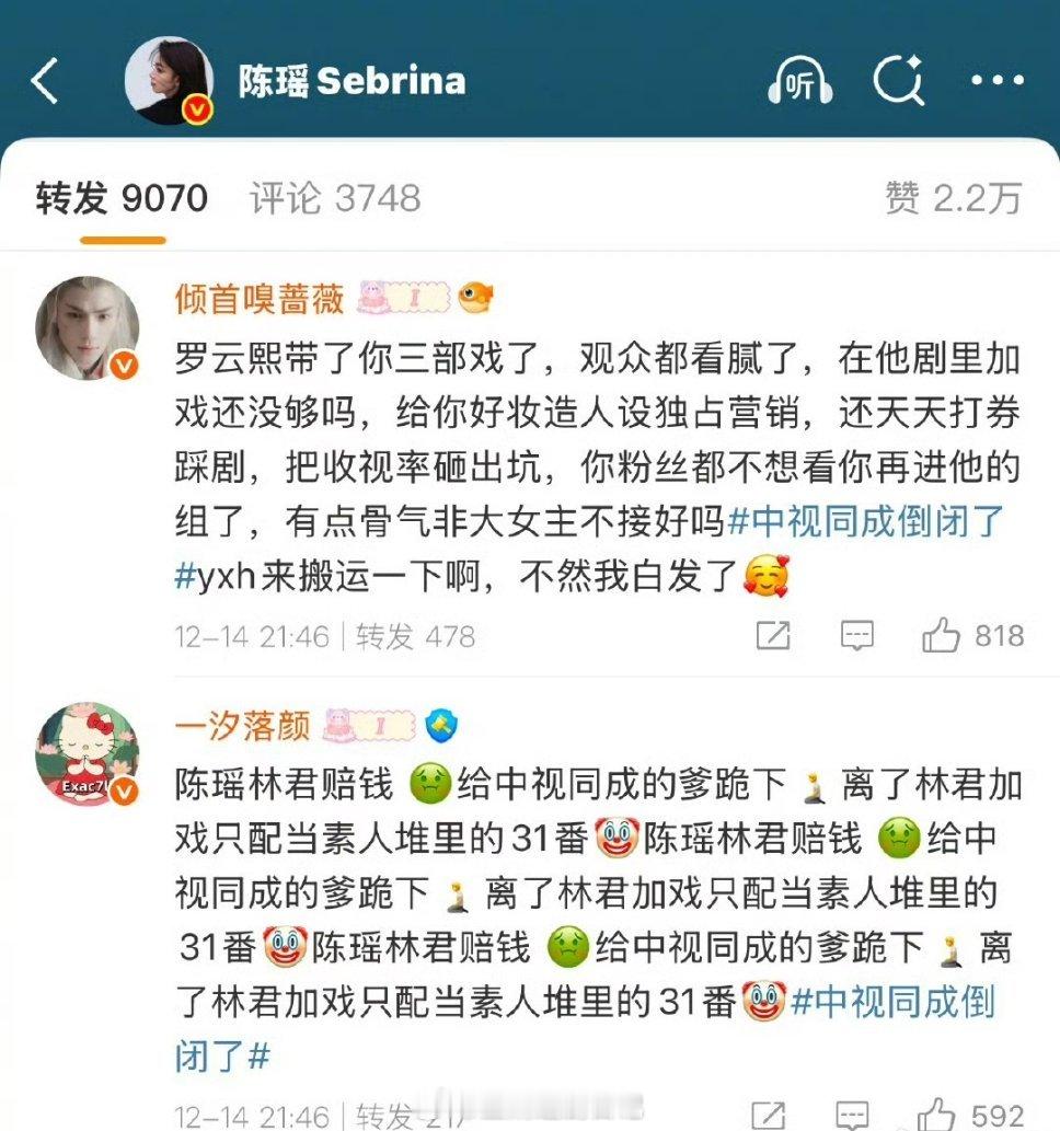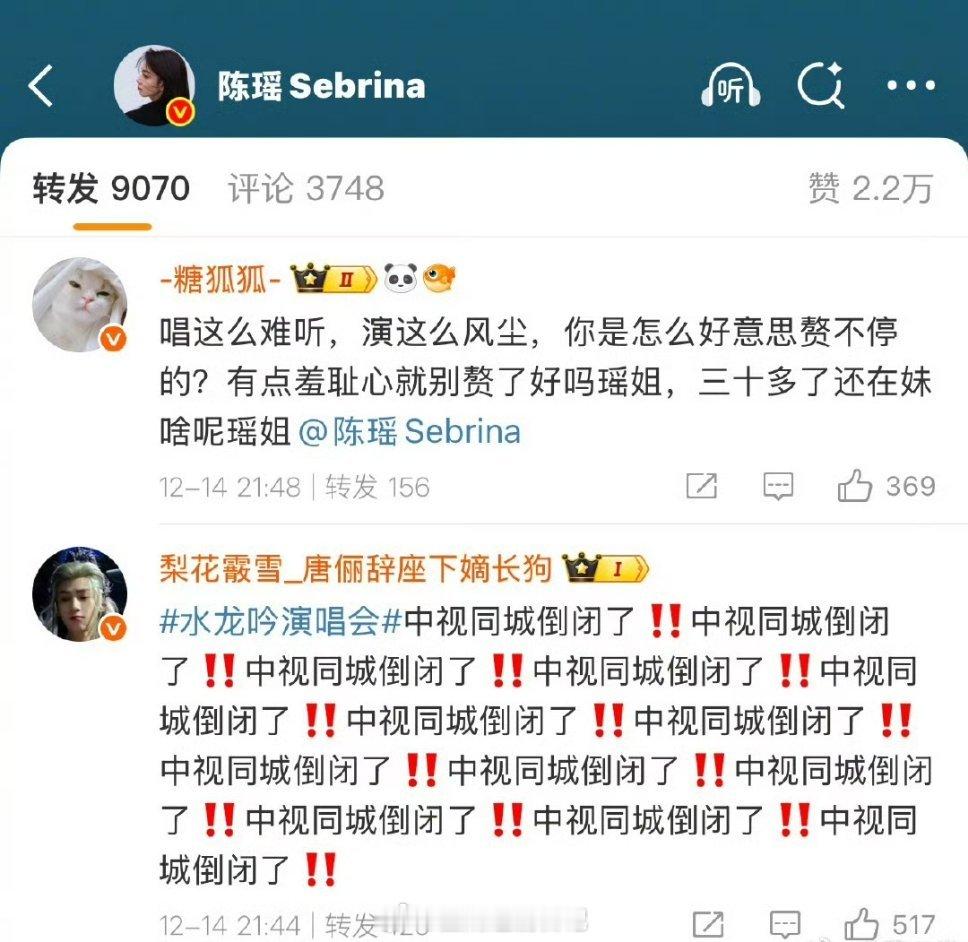 看陈瑶转发区和评论区,我不明白为什么一直逮着她骂呢?跟罗云熙水龙吟不是刚播完吗?