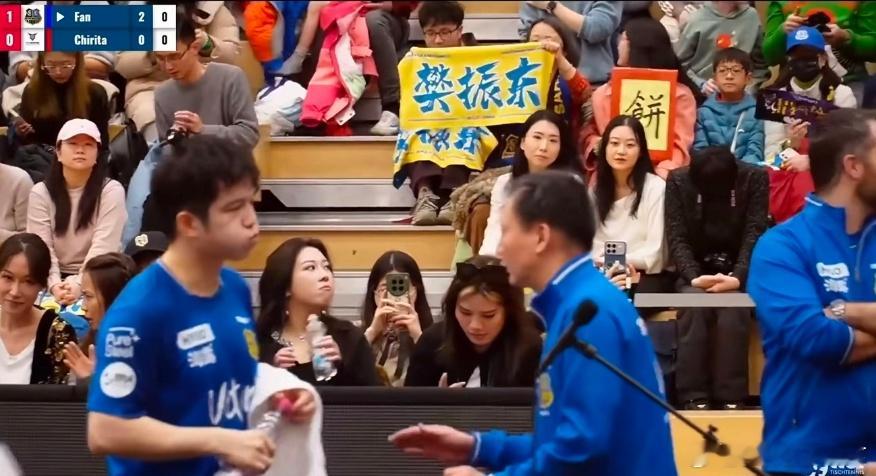 这是樊振东的一组局间照其内容好丰富。你都看到了什么?