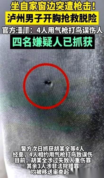 我跟你说,有时候现实比电影离谱多了。 一个男的,在自己家二楼窗户边晒太阳,暖洋洋的,估计都快睡着了。 突然,“砰”一下,胸口跟被锤子砸了一样,低头一看,一个血窟窿。 你猜怎么着? 楼下有四个“好汉”在用气枪打鸟。 就为了这点破事儿,这点所谓的“乐趣”,一颗子弹就这么不长眼地飞进别人家里,直接干人胸腔里了。 开胸手术啊。 就差那么一点点,一条命就没了。 就因为几个人闲得蛋疼,想找点乐子。 真的,这事儿最让人后背发凉的,不是什么深仇大恨,反而是这种“我没想那么多”的蠢。 他可能会说,我不是故意的,我就是打个鸟。 对,你不是故意的,你只是不在乎。 你那点廉价的、自以为是的“娱乐”,差点就直接报销了别人的一辈子。 这个世界有时候就是这么草台班子。 你永远不知道,你平淡无奇的某一天,会不会被另一个人的愚蠢和不负责任,强行砸出一个大坑。 好好在家待着,都能被“枪击”。 你说这叫什么事儿。