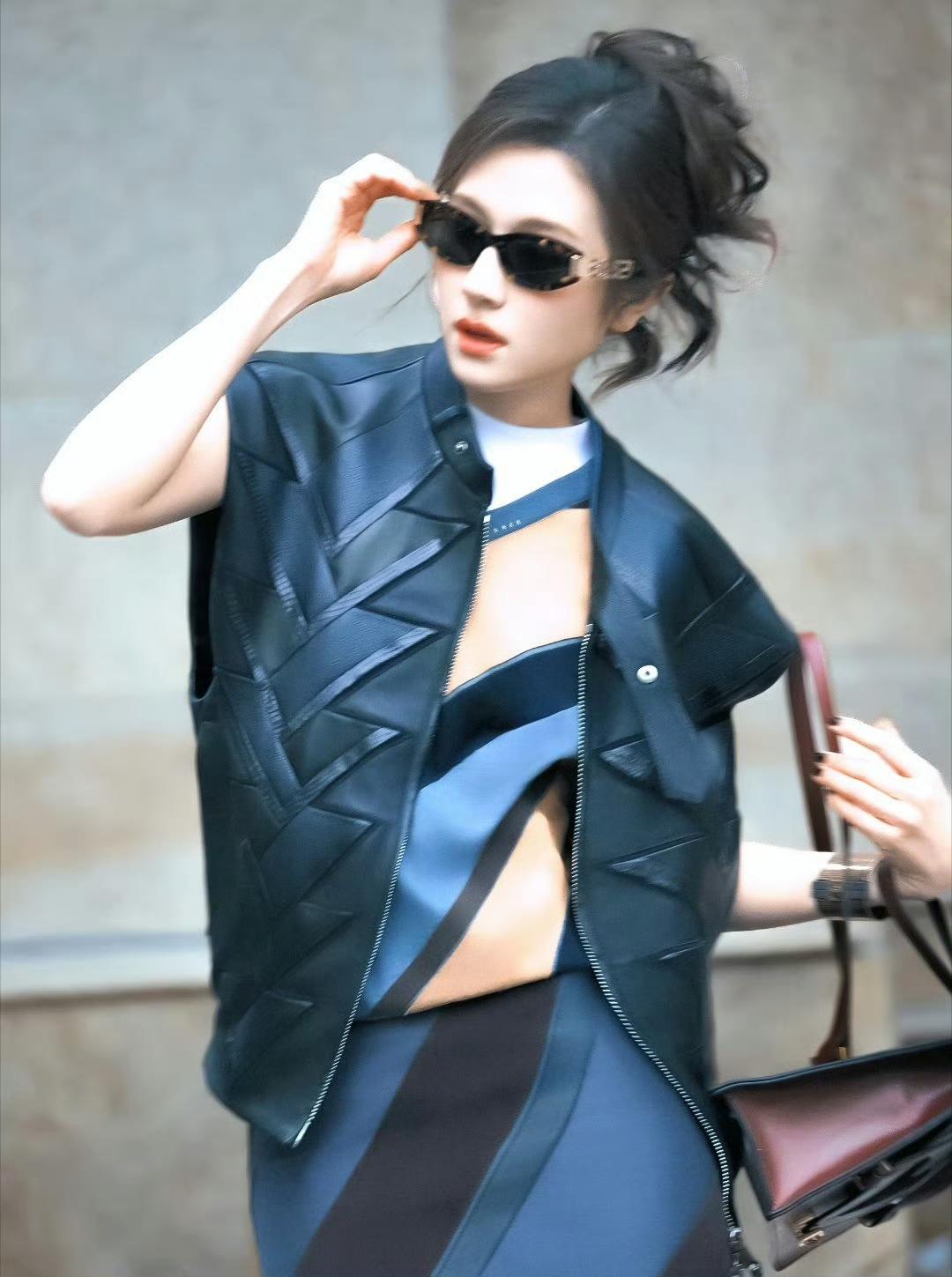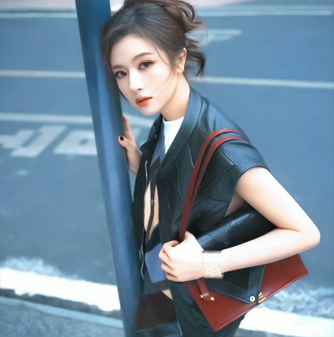 都市时尚少女,手捧鲜花,优雅漫步在街头。李兰迪!!!