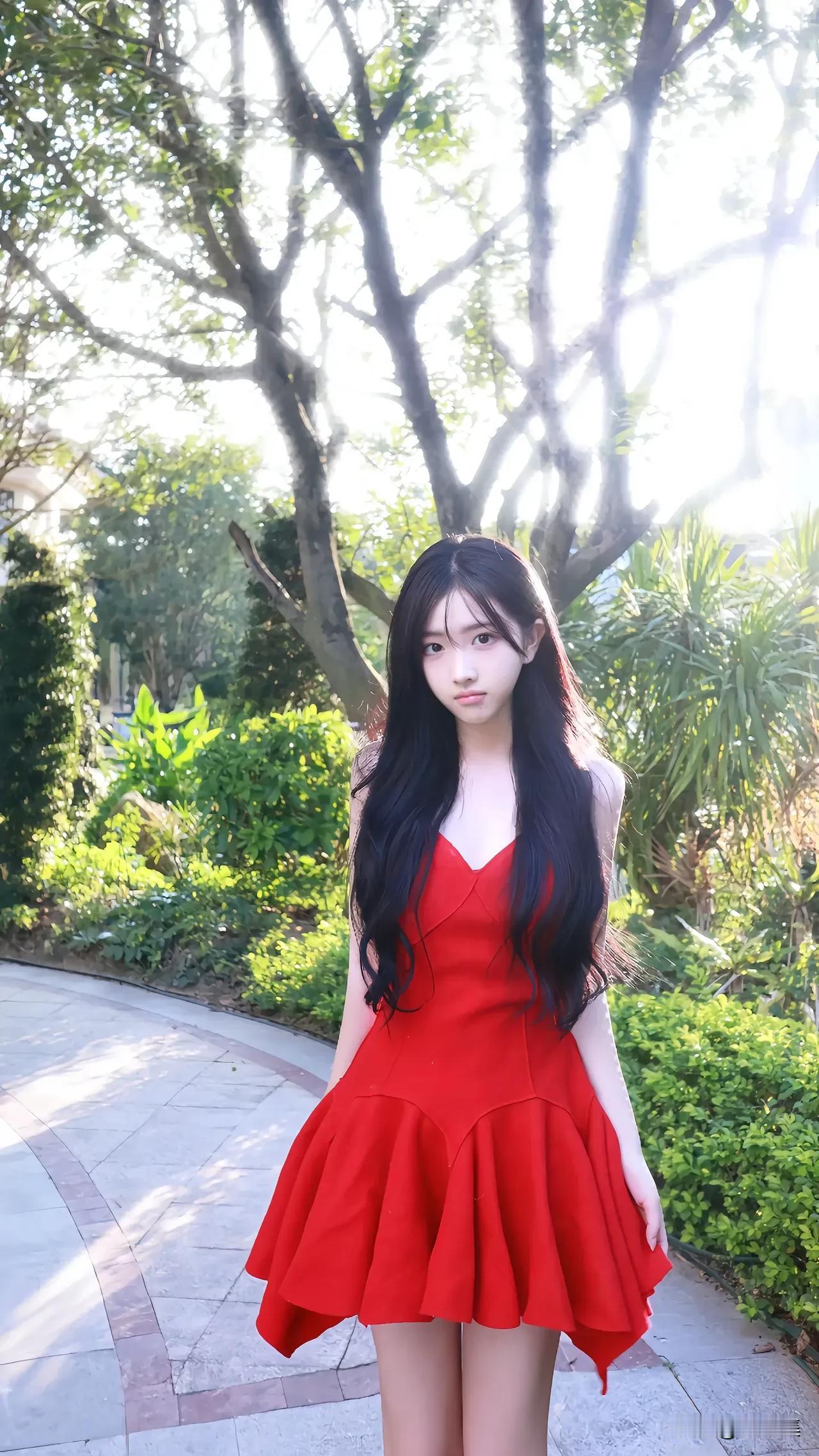 红衣少女,笑靥如花,传统与现代的完美融合。