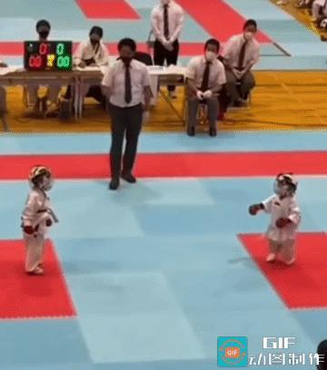 她每次都是主动进攻的,步伐看着不仅可爱,而且也是正确的。只是手和腿没有对方长,个子没有对方高,不是一个级别而已,相信再过两年,可能就不是这样子了。 第一次进攻,点数1:2;第二次进攻,点数3:1。你若是场上裁判,你应该判谁赢呢?