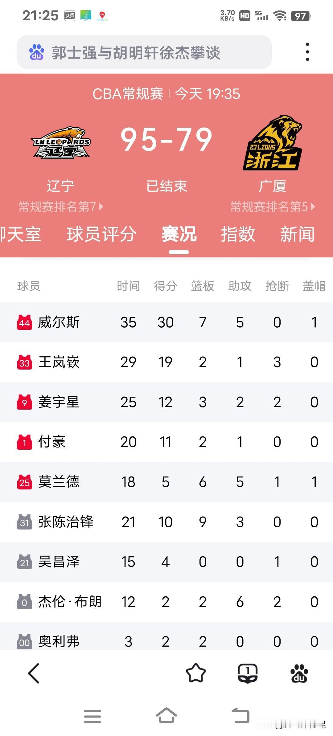 辽宁主场95:79大胜卫冕冠军广厦队,赛后杨鸣点评赢得掌声雷鸣: 杨鸣:本场比