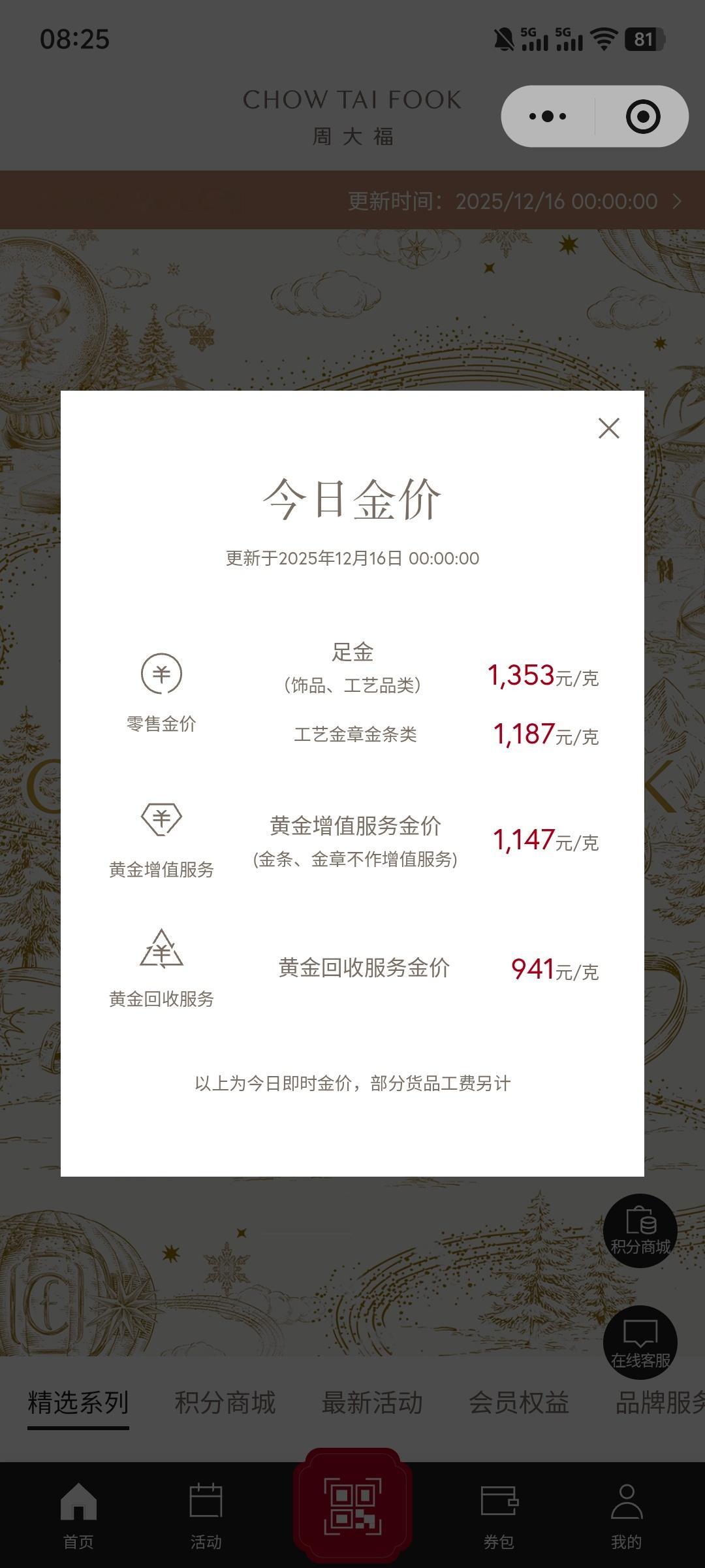 金饰克价涨到1353元金饰又双叒涨了!这趋势感觉没多久会上1500元/克