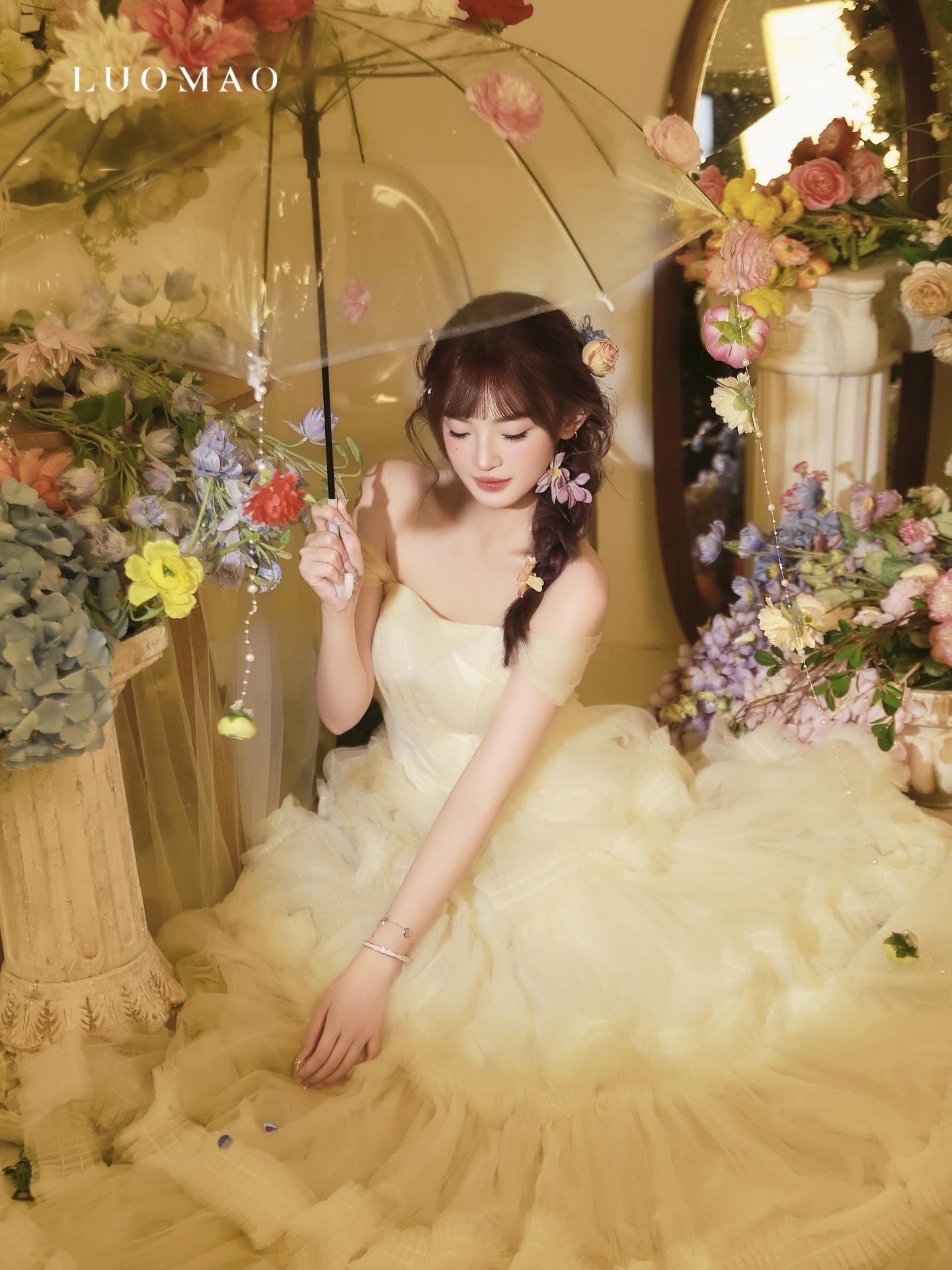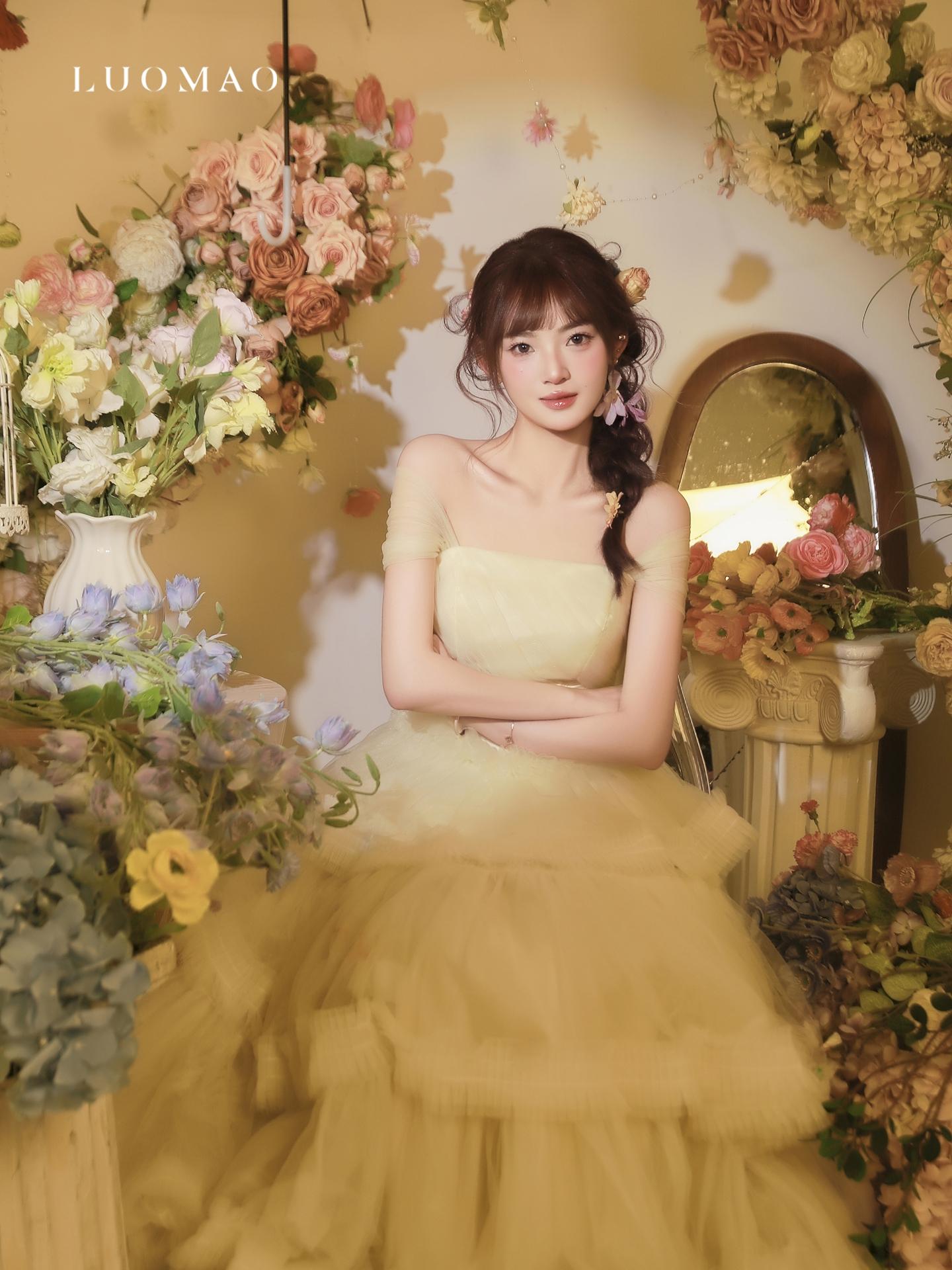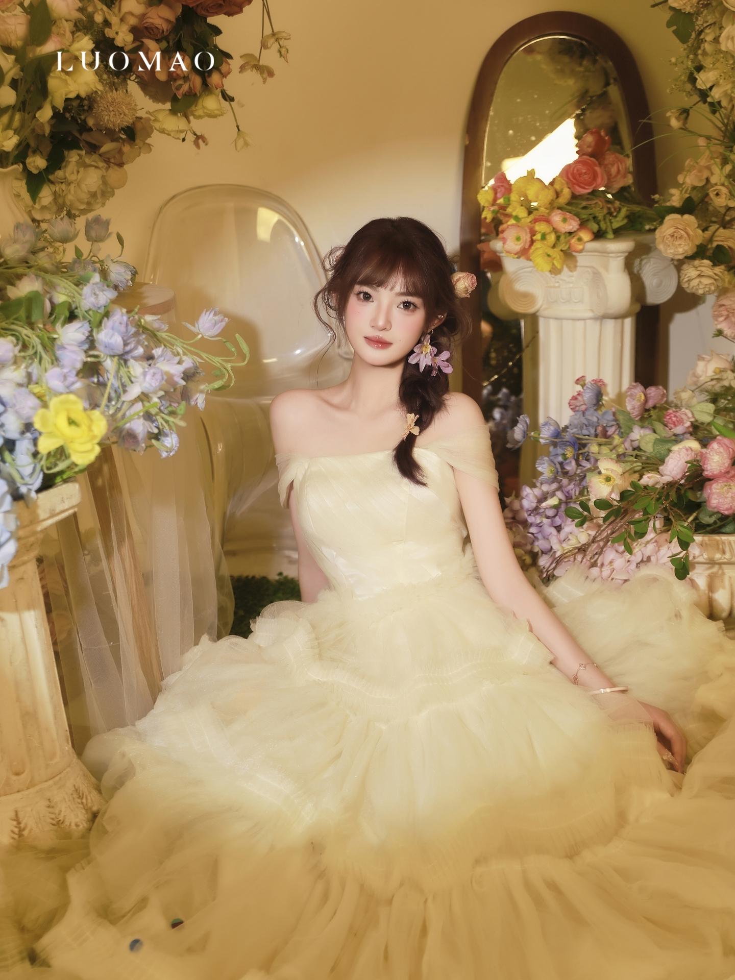 谁拍谁是花仙子!奶油黄礼服写真直接杀疯。
