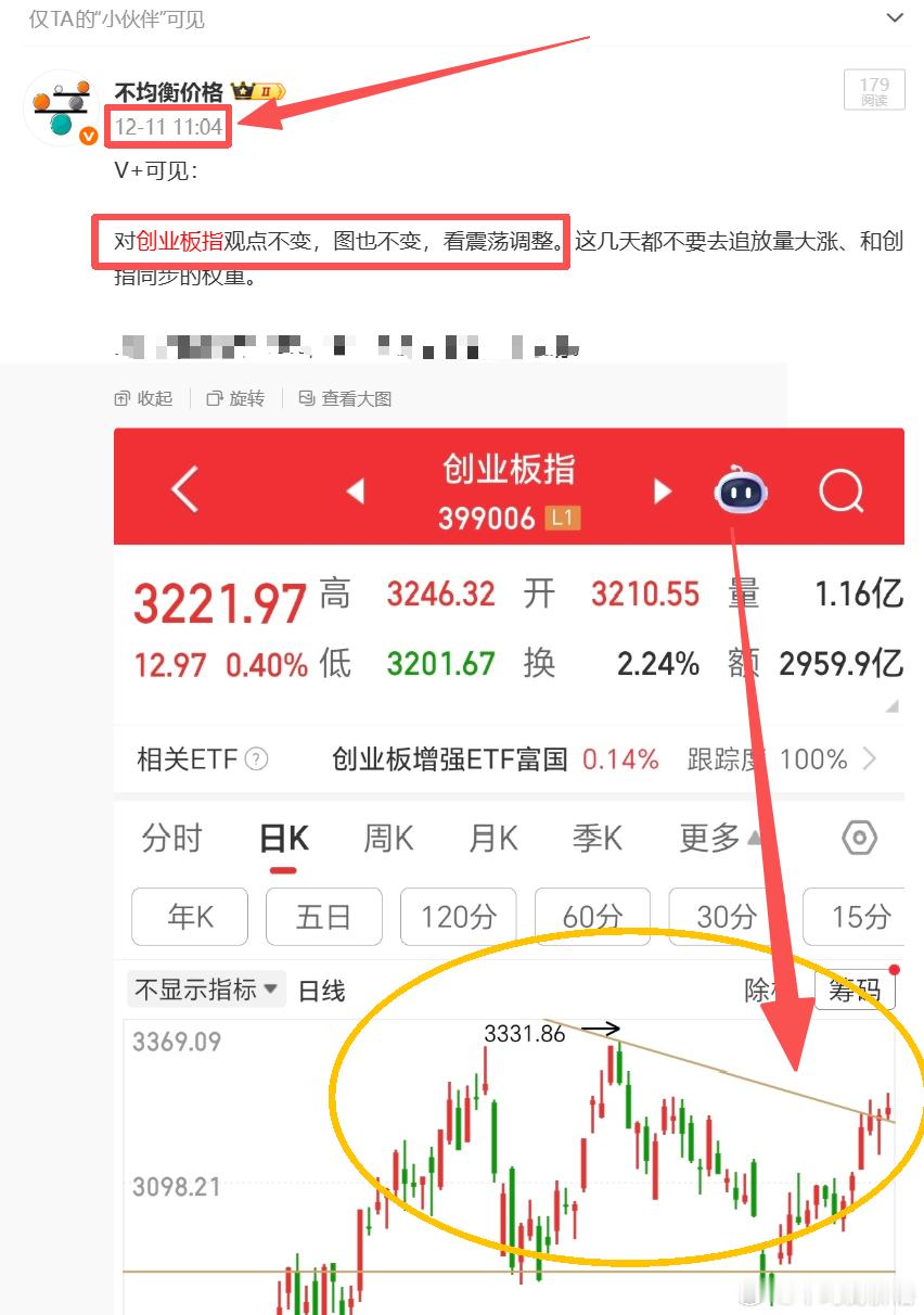 今天行情我说如我所料,你们信吗?11月19日,我提前说创业板指支撑位2900,难以破位。12月11日的V+,我再次在创业板指反弹后,逆势提示,创业板指阶段调整压力。我一直强调要有前瞻性的观点,从来都是马前炮,事后解释没有任何意义! a股 财经