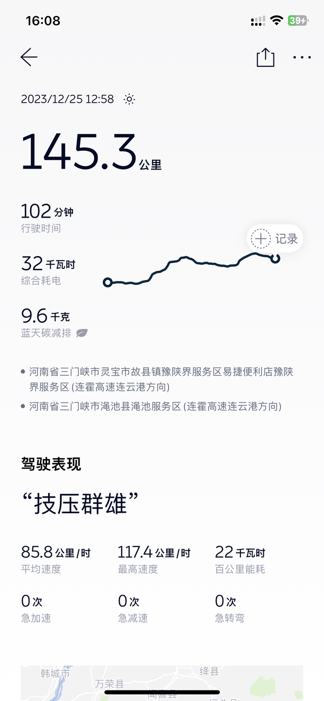 从西安回家高速续航表现 从nioday 结束回家路上,相信去了西安的车 友都知道,西安真是冷的够呛,回来路上限 速100顶着开,跑了一段140公里给大家展示一下,22能耗,我觉得不错了,毕竟这天气冷的充电都很慢,这能耗75度电池能跑350公里,100度电能跑 450公里左右。配上换电站基本上100公里左右一个吧,600公里我跑了7个小时到家