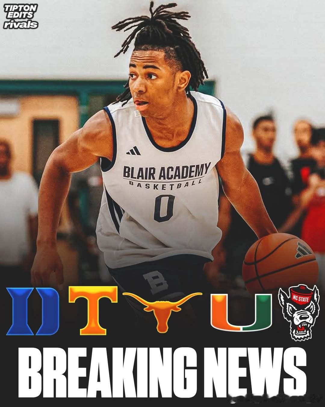 2026届五星高中生Deron Rippey Jr.将于12月30日公布大学择校决定他的最终选校名单包括杜克大学、田纳西大学、德克萨斯大学、迈阿密大学和北卡州立大学