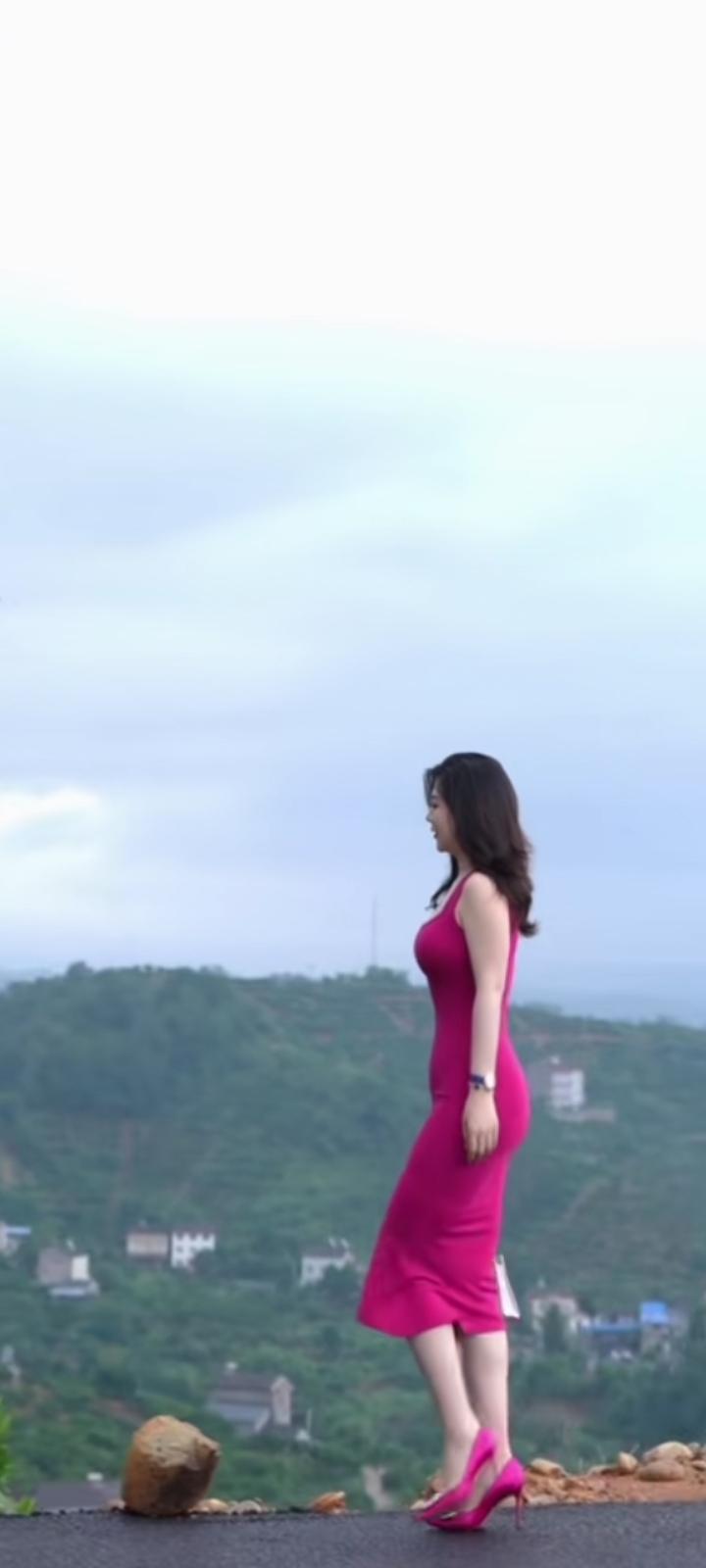 雨中漫步,粉裙飘飘,撑伞漫步花间,唯美浪漫。