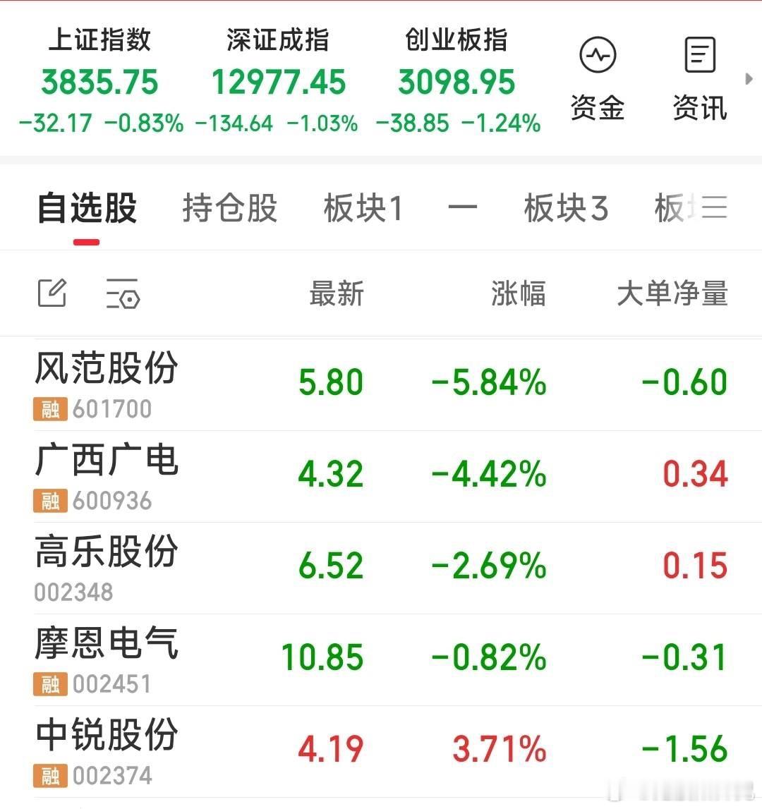 【实时战况】今天建仓了风范股份,中锐股份。原有的高乐股份,广西广电,摩恩电气暂持观察中。今天建仓战斗已结束,破例多建仓了一票。大盘大跌,休息静观一下吧!