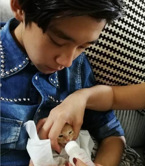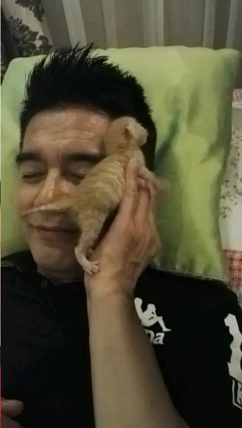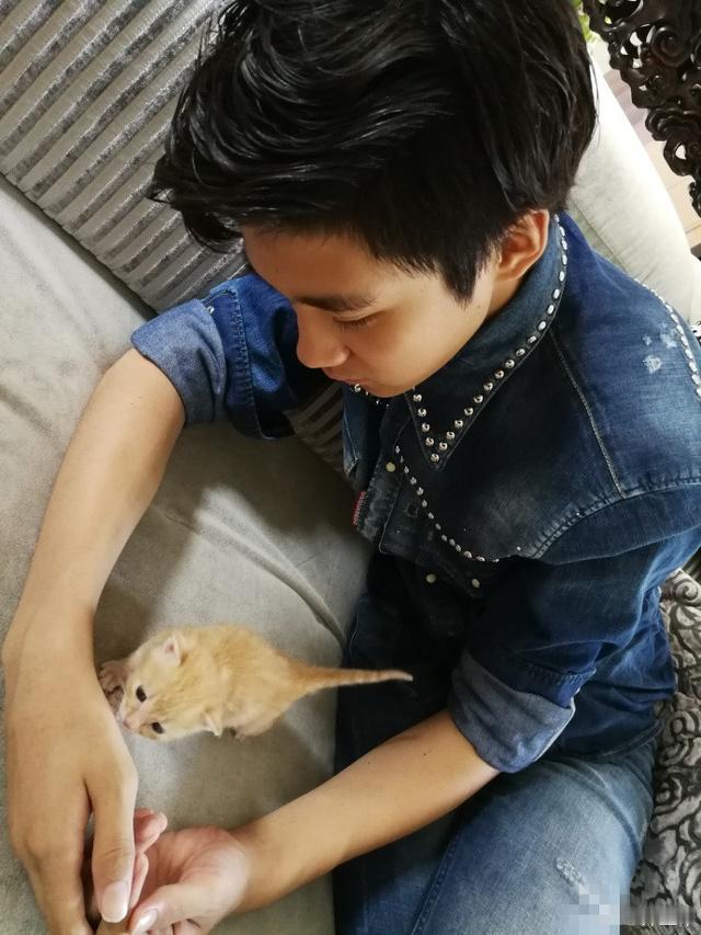 许何的小奶猫真幸福,许何父子俩对它很好呀,有吃有玩的。
