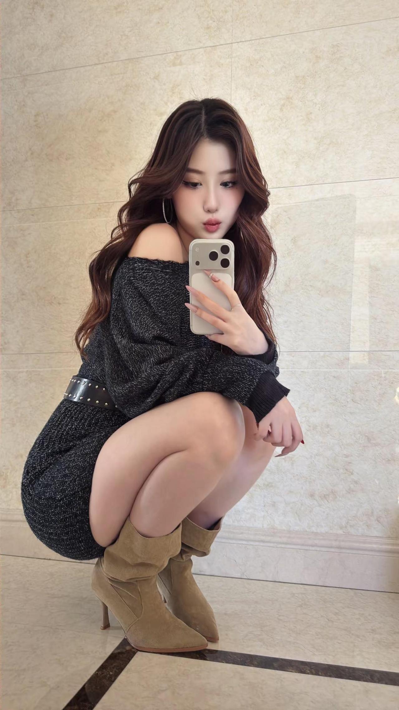 浅灰针织+深灰鱼尾裙的灰调搭配,显白又高级显白穿搭 梨形身材穿搭