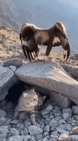 鹰俯冲的话,鹰赢, 在地上的话,猫赢![泪奔]