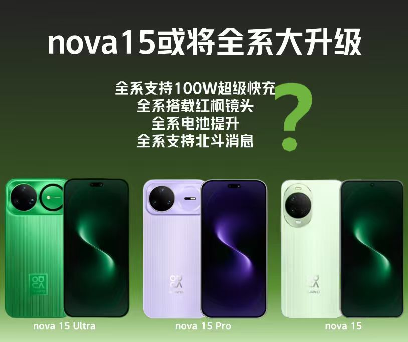 华为nova15或将搭载前后置双红枫 华子给这代nova的料还是太猛了,前后双红枫,这怎么拍都颜色很准!据说这次价格也很猛,期待一下吧华为nova15有望迎来全系大升级