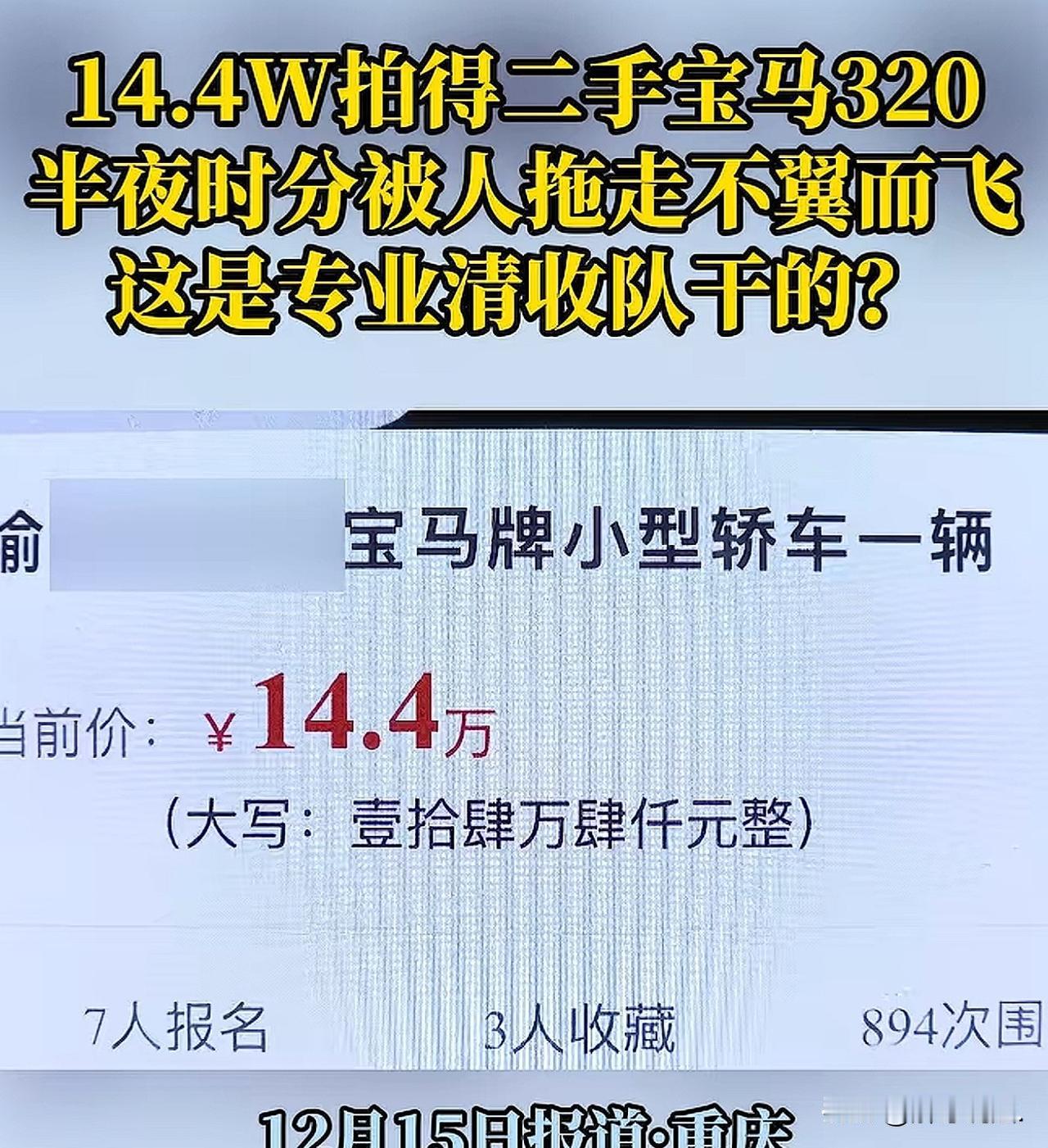 “亏大发了!”重庆,一男子在法院竞拍下,花14.4万经拍下一辆2023年的宝马3