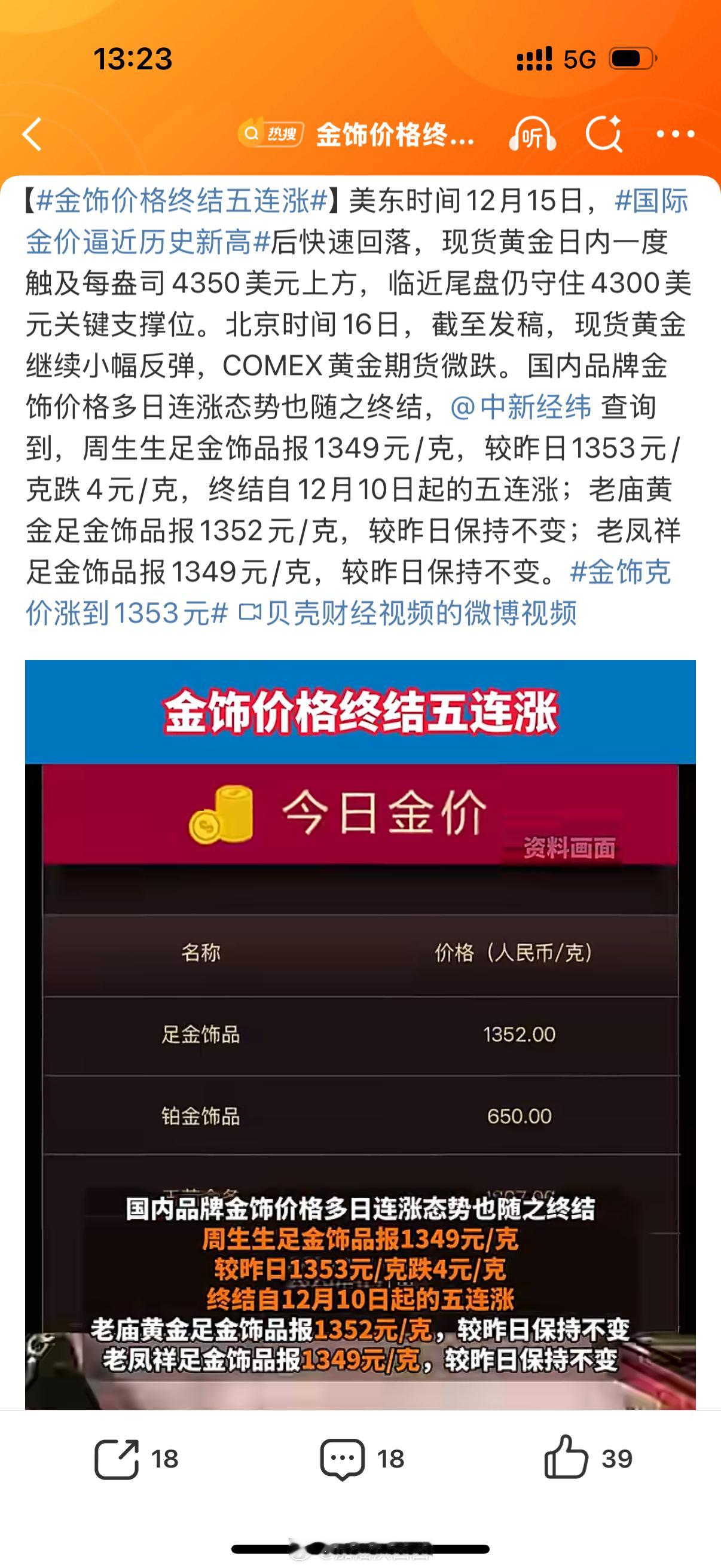 金饰价格终结五连涨金价 太夸张了,涨成奢侈品了