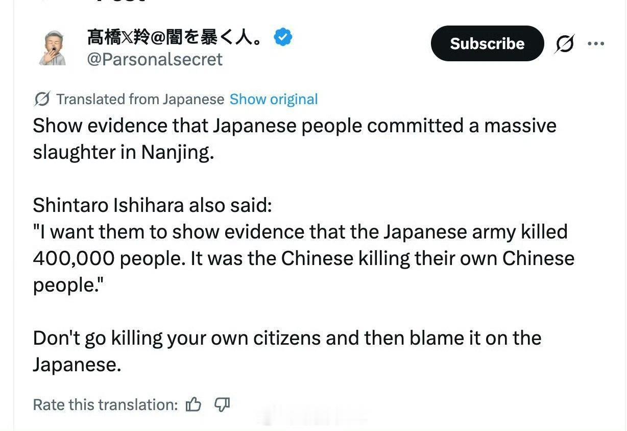 日本极右翼分子:南京大屠杀的证据在哪里?拿出来看看? 日本很多右翼份子趁机已经不掩饰了,他们现在考虑的问题不是偷偷摸摸的复兴军国主义,而是明目张胆的说,要把军国主义以什么样的进度恢复。 我认为想要日本认错已经不太可能了,整个国家都在全面右转。 按照他们的逻辑,火烧东京也不存在,原子弹也没有炸广岛,毕竟没有证据啊! 总结一句话:揍的还是太轻了! 南京大屠杀 侵华日军大屠杀 日本鬼子大屠杀