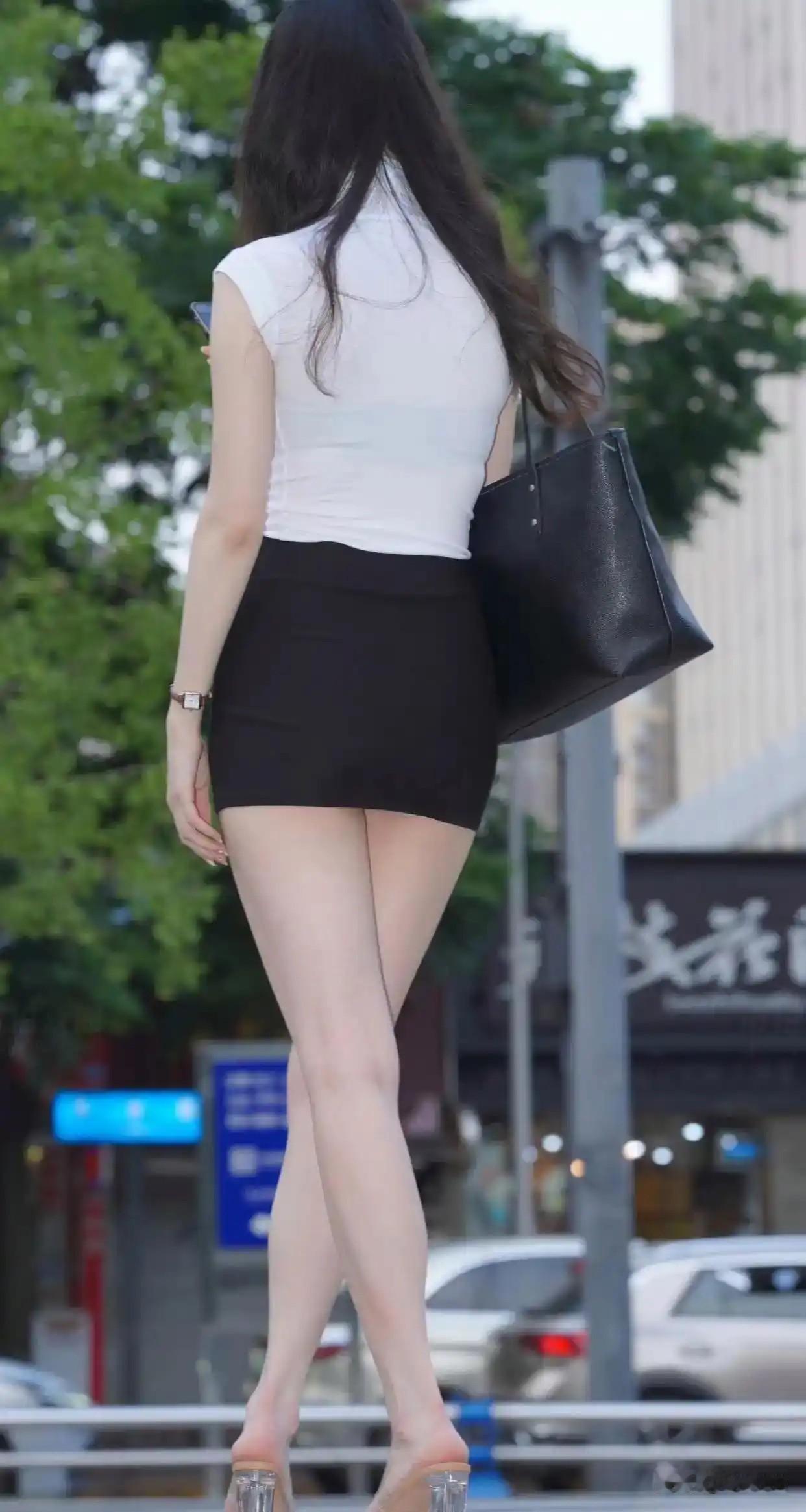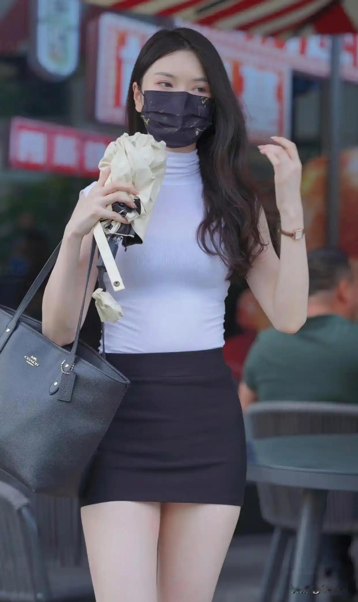 都市时尚女孩,白色上衣与黑色短裙的完美搭配,轻松出行!👗💃🏻