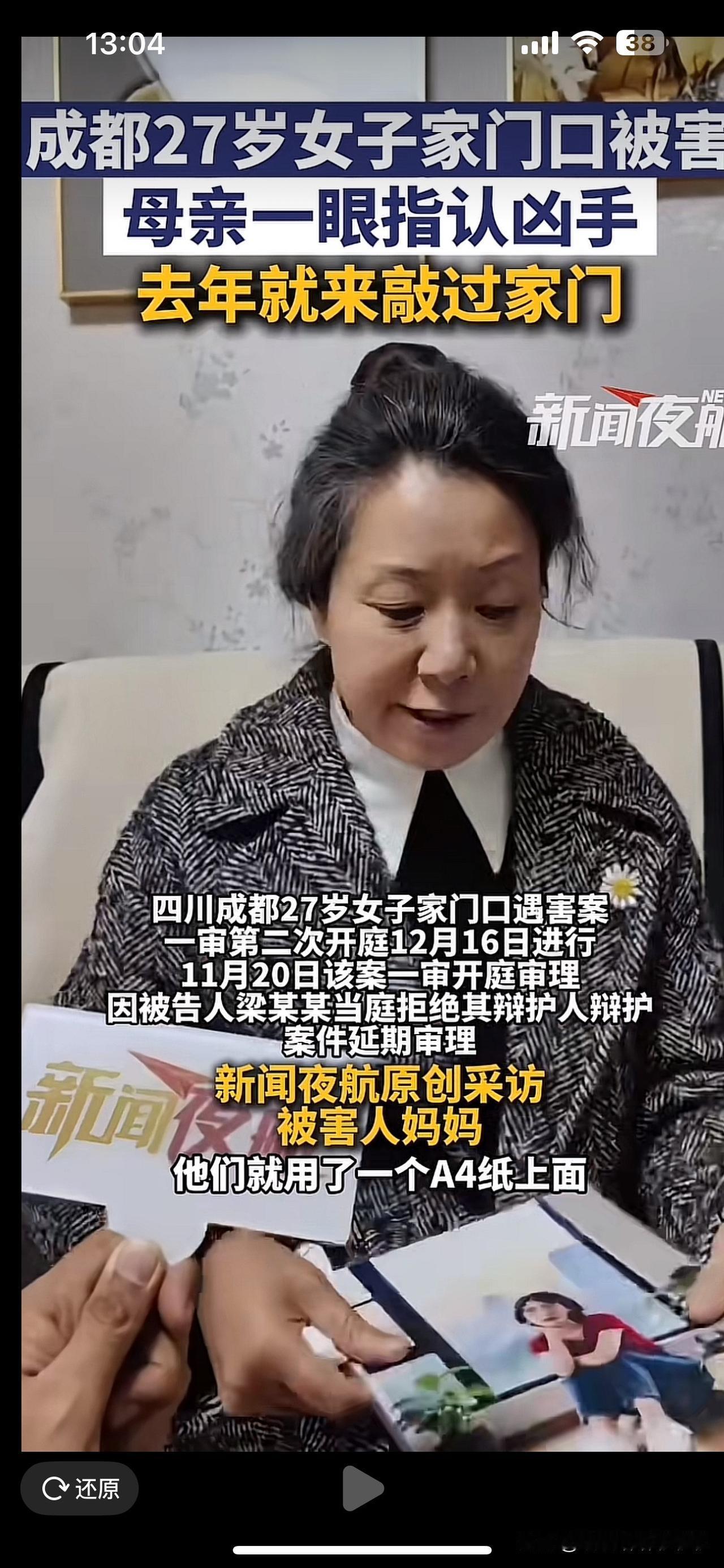 成都女子家门口遇害案12月16日再次开庭 梁某某为什么否认了自己有精神疾病呢?27岁女子家门口遇害案今天是一审第二次开庭,表面来看,梁某某否认自己有精神疾病。不合逻辑,要知道鉴定给他贴上了精神分裂症部分刑事责任能力的标签, 也就是说,只要他点头承认,就能大概率保住性命。可他偏要反着来,不仅一口咬定自己没病,还当庭炒掉辩护律师,硬要律师按照正当防卫为他辩护。怎么分析这波儿操作? 首先让人费解的是。他的否认偏偏和真正精神病人的表现背道而驰,你看这一系列的操作,逻辑清晰,目标明确,回答那个问题肯定有人会问,他放着减刑的机会不要,非要喊正当防卫,难道是疯了吗? 其实不然,这才是他的算计。正当防卫的核心,只有在自己的生命或者合法权益受到正在进行的不法侵害的时候。采取的防卫行为才可能被认定。梁某某之所以咬着这一点不放,就是想扭曲整个案件的真相, 把自己事先带刀滋扰、蓄意捅刺10刀的故意杀人包装成被被害人质问打斗后的自保。他心里很清楚,一旦正当防卫被认定,哪怕只是防卫过当,罪责也会大幅减轻,甚至可能脱罪,这可比部分刑事责任能力的减刑幅度大多了。 不管怎么算,计但是永远掩盖不了他持刀捅刺10刀的残忍事实。他否认精神病不是因为他真的没病,而是为了追求更大的脱罪可能。我们期待法庭能拨开这些迷雾, 结合他作案前的滋扰行为、作案时的残忍手段、庭审时的清醒对抗,做出最客观的判断。让所有人相信无论任何理由,剥夺他人生命的行为,都必须付出沉重代价