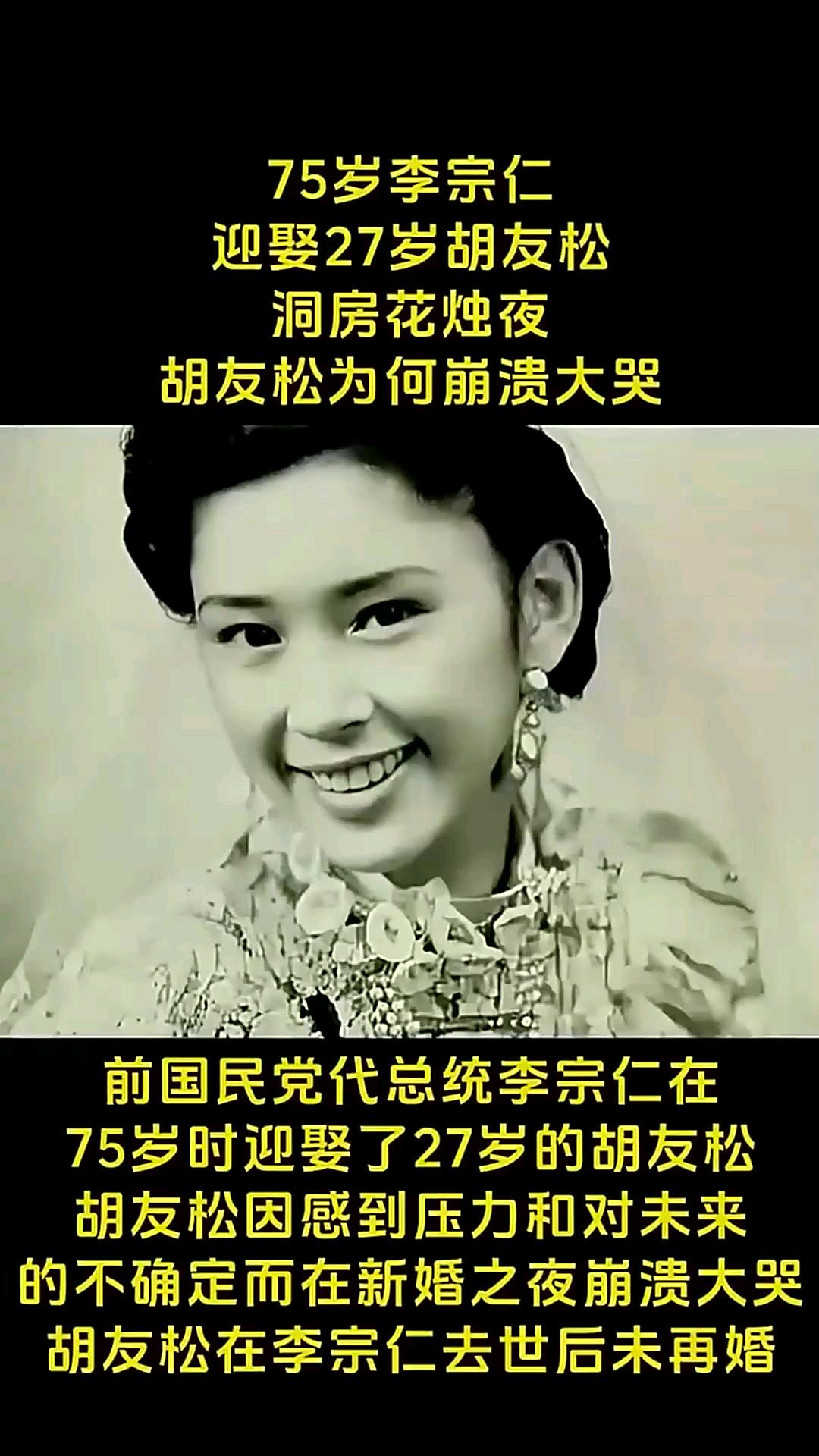 1966年,75岁的李宗仁icon迎娶了26岁的胡友松icon,大婚icon当晚,当李宗仁满心欢喜地走进卧室时。不料,胡友松却哭着说:“你不要过来,我们分房睡……” 1966年7月的一个深夜,北京大饭店的喧嚣终于散去,这原本应是名将李宗仁人生中又一个值得庆贺的春风得意时刻,他在75岁的高龄迎娶了比自己小49岁的娇妻,然而当这位叱咤风云的台儿庄战役icon指挥官带着喜悦推开婚房的大门时,迎接他的却不是温香软玉。 而是一个泪流满面的背影,端坐在床边的胡友松,脸上没有半分新嫁娘的羞怯,全是惊恐与委屈,面对试图靠近的丈夫,她几乎是本能地喊出了那句让所有新郎都心寒的话:“你不要过来,以后我们分房睡”。 李宗仁愣在原地,脸上的笑意瞬间僵住,可看着姑娘哭得肩膀都在抖,半点火气都生不出来。他缓缓收回脚步,声音放得比平时柔和了许多,没有追问缘由,只是轻声说:“好,听你的,分房就分房,你别吓着自己。”说着转身倒了杯温水递过去,指尖碰到杯子时,还能感觉到姑娘的手在微微发颤。他太清楚这场婚姻里,胡友松背负了多少压力——外界早把“图名图利”“攀附权贵”的帽子扣在她头上,可没人知道这个26岁的姑娘,自幼跟着养母胡蝶颠沛流离,长大后在医院做护士,日子过得清贫又孤单,嫁给比自己父亲还大的李宗仁,一半是不忍拒绝长辈的托付,一半是对这位抗日名将的敬重,可真到了新婚之夜,年龄差距带来的隔阂、对未知生活的恐惧,还是让她忍不住崩溃。 李宗仁没有急着拉近两人的距离,反而给了胡友松足够的空间。白天他会跟她聊些过去的往事,不是摆名将的架子,而是讲台儿庄战役时士兵们的热血,讲回国后看到山河无恙的欣慰,语气平和得像个普通老人;晚上不管再晚,都会先去胡友松房间看看,给她掖好被角,确认她睡熟了才回自己房间休息。有一次胡友松感冒发烧,李宗仁守在床边一夜没合眼,亲自给她物理降温,熬了小米粥一勺一勺喂她,那样的细心温柔,让胡友松心里的防线慢慢松动了。她渐渐发现,这个战场上叱咤风云的将军,私下里藏着不为人知的柔软,他从不会勉强她做任何事,甚至会记得她随口提过喜欢吃的点心,隔天就让人买回来。 慢慢的,胡友松不再抗拒李宗仁的靠近,分房睡的约定不知不觉被打破,两人开始像寻常夫妻一样相处,她悉心照顾李宗仁的饮食起居,帮他整理过往的文稿,他则教她读书写字,带她去院子里散步晒太阳。可外界的非议从来没停过,总有人说胡友松是冲着李宗仁的财产来的,这话传到她耳朵里,她只是默默把李宗仁交给她保管的存折、字画都整理好,在李宗仁1969年病逝后,毫不犹豫地把所有遗产都捐给了国家,连一件私人物品都没留。她用最实在的行动,打了那些造谣者的脸,也证明了这场婚姻里,从来没有功利算计,只有相互扶持的温情。 后来有人问起胡友松,嫁给李宗仁后悔吗?她笑着摇头,说这辈子最幸运的就是遇到了李宗仁,他给了她从未有过的安稳和尊重,哪怕两人相处的时光只有短短三年,却足以温暖她往后的人生。那些曾经的误解和偏见,终究抵不过岁月里真实的陪伴,这场相差49岁的婚姻,没有惊天动地的浪漫,却藏着最动人的真诚。各位读者你们怎么看?欢迎在评论区讨论。