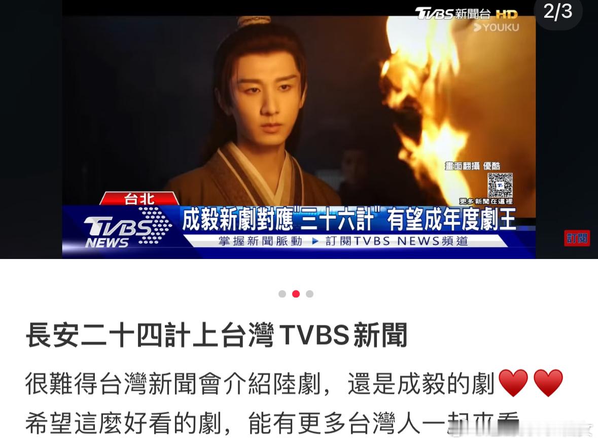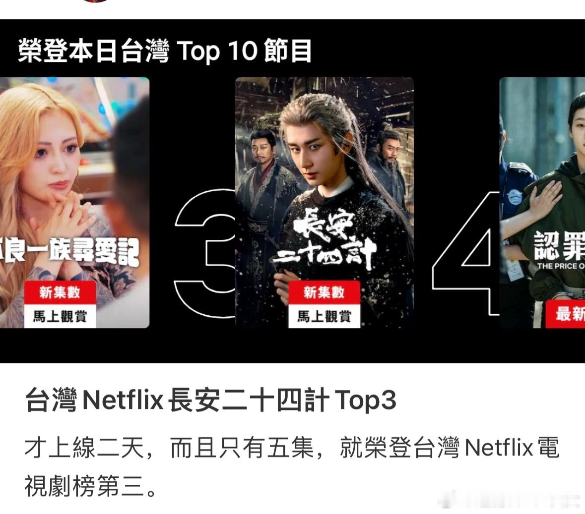 台湾TVBS新闻报道《长安二十四计》“成毅冷血复仇,剧情好看口碑狂飙,有望成为今年剧王”。观众说,很难得台湾新闻会报道陆剧,是真的很精彩。目前Netilx台湾地区长安二十四目前全球剧集排名前三名,太火了