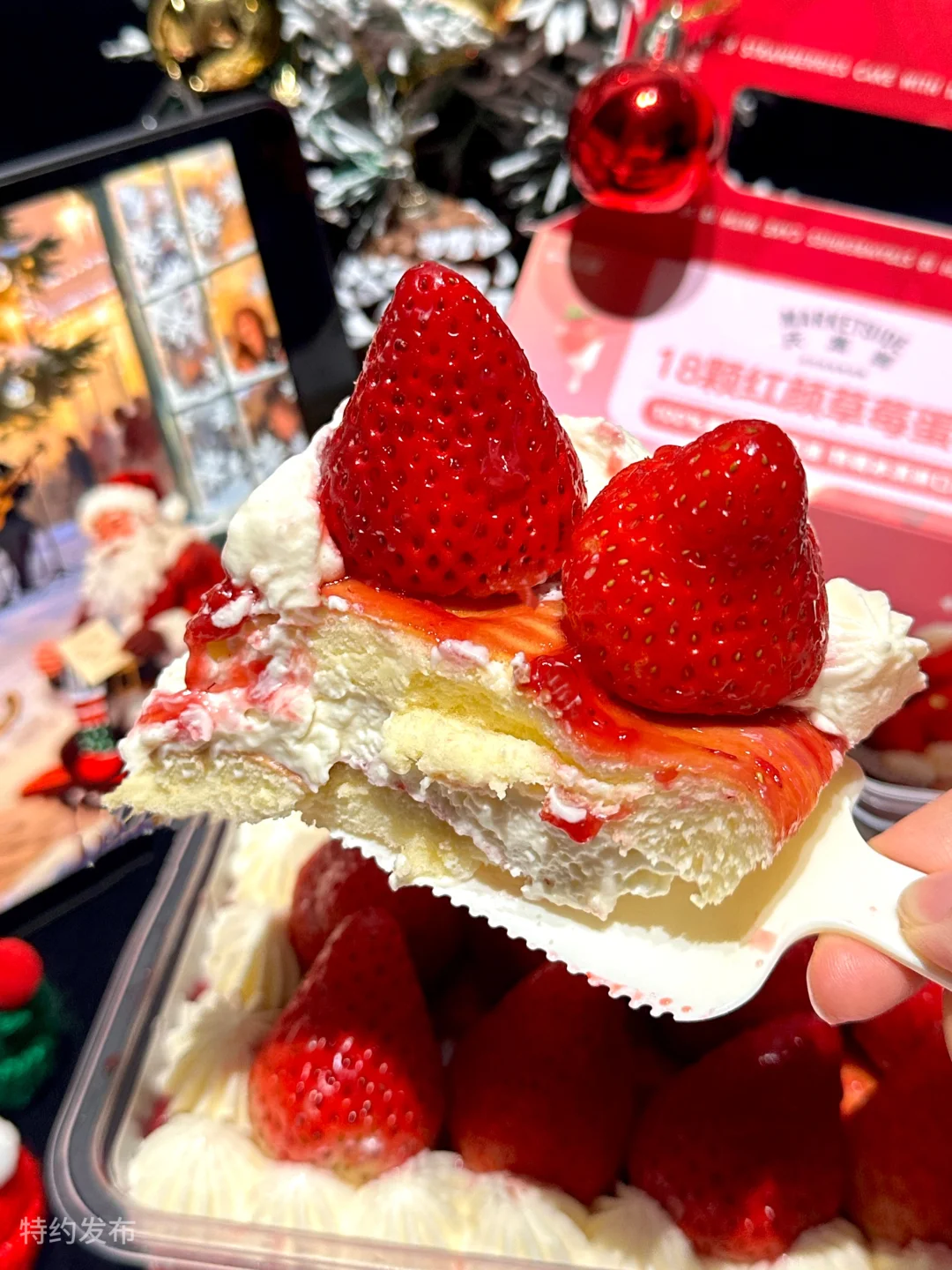沃尔玛你的沃集鲜研发是真的牛!! 谁能想到冬天第一份新鲜草莓蛋糕🍰的快乐!幸福感是直接溢出来的! 是沃集鲜这个18颗红颜草莓蛋糕给的! 打开就是一整个香甜的草莓香! 满满18颗红颜大草莓🍓堆满一整层 都是每日现切的,个头饱满又多汁!🤤 100%安佳动物奶油像奶霜一样软~ 挖一勺裹着松软的蛋糕胚 奶香味裹着草莓甜 清爽得能连炫半盒都不腻! 一口下去是谁幸福了我不说🥰 离开了沃尔玛…谁还把我当小孩啊! 反正我已经二刷准备再买了!草莓控快冲!