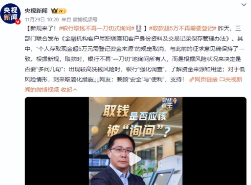 国家正式出手!2026 年 1 月 1 日起,个人存取现金一律按 “新规” 来,有存款的赶紧看! 还记得以前去银行取自己的钱,有时候比去办案还紧张吗? 央行明确宣布,过去那套让人头疼的大额现金存取登记制度将彻底取消,这对老百姓来说,最大的变化就是,去银行取大额现金不再像接受审讯。 这几年,手里有点积蓄的人应该都有类似经历,按照2022年的规定,个人存取现金超过5万元,除了出示身份证,还要填写一大堆表格,这可不是简单的资料登记,而像是一场隐私的“拉锯战”。 有人家里装修急着付工钱,取个六七万,结果被柜员问得七零八落,最后不得不把和装修公司的聊天记录翻出来,有人取理财到期的钱带家人旅游,却因为没办法清楚说明具体消费场景,被卡在柜台半小时,某些网点甚至加戏更严重,明明合法资金,感觉却像接受审查,又耗时间又伤尊严。 但从2026年开始,这种“一视同仁式盘问”的做法将成为历史,只要身份证真实有效,无论你取几十万现金,柜员都不会再一口一个“你的钱是干嘛的?”只做身份核验,资金将完全是你的私事,无论是缴学费、买车,还是过年包红包,都不用被多问一句。 有人可能会担心,放开了,洗钱、电信诈骗是不是更猖狂了?金融风险会不会增加?其实不用怕,取消柜台盘问,只是把监管方式换了个形态,从“靠人防”升级为“靠技术防”,银行后台的大数据系统和人工智能风控,比人工问话敏锐得多。 简单来说,如果你平时工资正常,每月偶尔取笔大额现金,系统会判断为低风险行为,直接放行,相反,如果账户平时冷冷清清,突然深夜大量资金进出,或者跨省快速转账,后台智能系统会自动报警,启动深度核查,以前那种“先问一遍,看有没有问题”的粗放方式,被精准化的风险管理取代,让正常用户顺畅办事,也让真正的违规行为无处藏身。 当然,也有几点要注意,取消大额现金登记,只针对普通人民币现金存取,像1万美元以上的外币现钞兑换、5万元以上的实物黄金交易,或跨境资金流动,仍然需要填写资料、做背景调查。 另一个容易混淆的是“用途登记”取消,并不等于“现金预约”取消,要是需要大金额的先进的话还是得提前预约,让银行准备足够现金,这完全是安全和效率考虑,而不是审问你。 身份证仍然是必备通行证,如果帮家人代办,记得带齐双方证件,总的来说,这次改革是给老百姓“减负”,砍掉不必要的流程,把对私人财产的尊重还回来,2026年起,银行柜台不再像审问室,而是真正回到为资金流通提供服务的地方,手里有大额存单的朋友,到时候可以好好体验一下久违的轻松感。