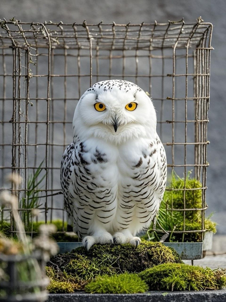 我梦见我与雪鸮对话。我:你为啥不像鹈鹕和秃鹫那样去露天饲养场呢?雪鸮:我宁愿呆在笼子里。那么,你看见它们飞走了吗?我说:它们并没有飞走。雪鸮:它们可以摇摆和转动翅膀,显示绚丽华美,却飞不走,因为它们的翎毛已经被剪短了。笼子有栅栏,所以翅膀不用被剪。它们同我一样,是飞不掉的。 “那你为什么还选择笼子?”雪鸮的眼珠在月光下缓慢转动,像两颗融化的冰。“你看,栅栏是诚实的——它从一开始就告诉你:此处有边界。而露天饲养场的天空,”它顿了一下,喙轻轻叩击栏杆,“是温柔的谎言。那些鸟以为自己在飞,其实只是在坠落时被风托住了。” 远处的秃鹫展开宽大的翅膀,在模拟悬崖的假山上摇摆。金属网分割着晚霞。 “它们每晚都梦见云,”雪鸮继续说,“我却梦见栅栏的经纬。在清晰的限制里,我保存着对完整天空的想象——这比沉醉于破碎的自由更珍贵。”它忽然振了振翅,羽缘擦过铁枝,发出琴弦般的颤音。“飞不走不可怕,可怕的是忘记自己飞不走。” 我顺着它的目光望去:露天场的鸟群正在驯养员的哨声中整齐转身,翅尖修剪处,晚霞正流畅地淌过。