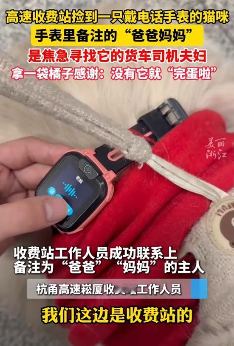 近日,浙江一高速收费员晚上巡逻时,发现旁边草丛有动静,一开始以为是流浪猫,结果走近一看,这只小猫竟然穿着衣服,而且还戴了电话手表,意识到这不是流浪猫后,收费员将小猫抱回房间,打开手表后,看到通讯里有爸爸和妈妈电话。 晚上,浙江某高速站收费员像往常一样,趁着车流间隙去收费站出口匝道巡逻,夜色里的高速旁静悄悄的,只有风吹过草丛的沙沙声,突然她听到不远处的草丛里传来 “窸窸窣窣” 的动静,听着像是小猫在叫。 收费员心想大概率是只流浪猫,高速边危险,万一跑到车道上容易引发事故,就想着过去看看能不能把它挪到安全地方。 可走近一瞧,她立马愣住了,这哪是什么普通流浪猫,浑身穿着干净的小衣服,圆滚滚的身子缩在草丛里,看着又乖又可怜。 她小心翼翼地伸手去抱,手指碰到小猫脖子时,又摸到个硬邦邦的东西,仔细一看,居然是块迷你电话手表,牢牢系在小猫的项圈上。 “这肯定不是流浪猫,是有家的!” 收费员一下子反应过来,赶紧把小猫抱回收费站的站房里,怕它受凉还找了块小毯子垫着。 站房里暖和,小猫也不怯生,乖乖趴在毯子上舔爪子,收费员试着按了按电话手表,屏幕亮了之后,清楚地显示着通讯录,上面就两个联系人:“爸爸” 和 “妈妈”,她心里一喜,这也太贴心了,赶紧先拨通了 “爸爸” 的电话。 电话接通后,那边传来一个焦急的男声,徐雅洁说明情况:“您好,我们是杭绍甬高速崧厦站的,捡到一只戴电话手表的小猫,是不是您家丢的?” 对方一听,声音瞬间拔高:“对对对!就是我家的猫!我们刚从收费站过没多久,正到处找呢!” 原来丢猫的是一对货车司机夫妇,这只小猫是他们长途运输路上的 “小伙伴”,平时走到哪带到哪,感情特别深。 当天他们路过收费站时,停车下来清理车上的垃圾,没注意车门没关严,小猫就偷偷蹿了出去,等他们开出半小时后,才发现 “毛孩子” 不见了,正急得团团转,沿途找了半天都没线索。 挂了电话才半小时,这对夫妇就急匆匆赶回了收费站,一进门看到趴在毯子上的小猫,司机妻子立马红了眼,快步走过去把小猫抱在怀里,一个劲地摸它的头:“可算找到你了,没有你可就完蛋啦!” 随后她从车上拎下来一袋桔子,硬要塞给收费员,一个劲地道谢:“太谢谢你了姑娘,要不是你细心,这猫在高速边指不定出啥危险,还亏得给它戴了电话手表,不然真是叫天天不应叫地地不灵。” 徐雅洁本来不想收,但架不住夫妇俩热情,最后只好收下了这份心意。 后来收费员把这事跟同事分享,有人拍了小猫戴手表的照片发到网上,一下子就火了。 网友们看完都觉得又暖又有趣:“现在的毛孩子也太幸福了,不仅穿衣服,还配电话手表,这配置比我都全!”“主人也太有先见之明了,给宠物戴电话手表,丢了也能快速找回,学到了!” 还有人点赞徐雅洁:“收费员小姐姐也太细心了,没把小猫当成普通流浪猫忽略,这波操作太暖心!” 更有养宠物的网友感慨:“长途带宠物出行真的要格外小心,车门一定要关好,给这对夫妇的安全意识和应急准备点个赞。” 其实这事儿看着巧合,背后都是细心和爱,司机夫妇给小猫戴电话手表,是怕它走失,收费员巡逻时留意草丛动静,是尽本职责任,正是这两份用心,才让走失的小猫顺利回到主人身边。 这事也给养宠物的朋友们提了个醒:带宠物出门尤其是长途出行,一定要做好安全防护,关好门窗、系好牵引绳,有条件的话可以给宠物佩戴带有联系方式的项圈或定位设备,这样万一宠物走失,也能多一线找回的希望。 而像收费员这样的工作人员,用细心和善意温暖了陌生人,也让这个冬天多了一份治愈的感动。 对此你怎么看? 信源:美丽浙江