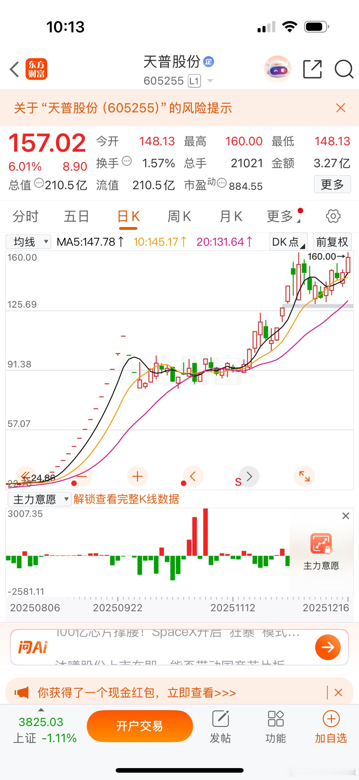 指数继续下行,妖股们强势抱团,天普股份,梦天家居,海王,海欣全部在涨,非监管的差点意思,赛微电子今天也是在涨。航天今天大分歧,航天机电不及预期,龙洲,飞沃都是正常表现大跌,第一天谨慎为止,今天做轮动的消费,无人驾驶不清楚持续性也没太多兴趣。