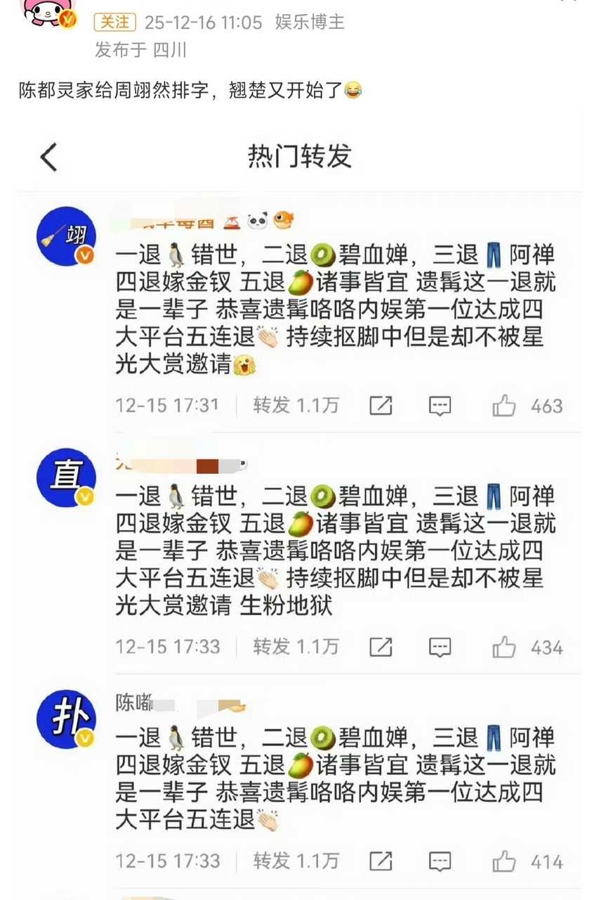 翘楚杀青好久了吧,陈都灵粉丝和周翊然粉丝怎么又开始了,陈都灵粉丝给周翊然排字,周翊然粉丝做了实绩对比图
